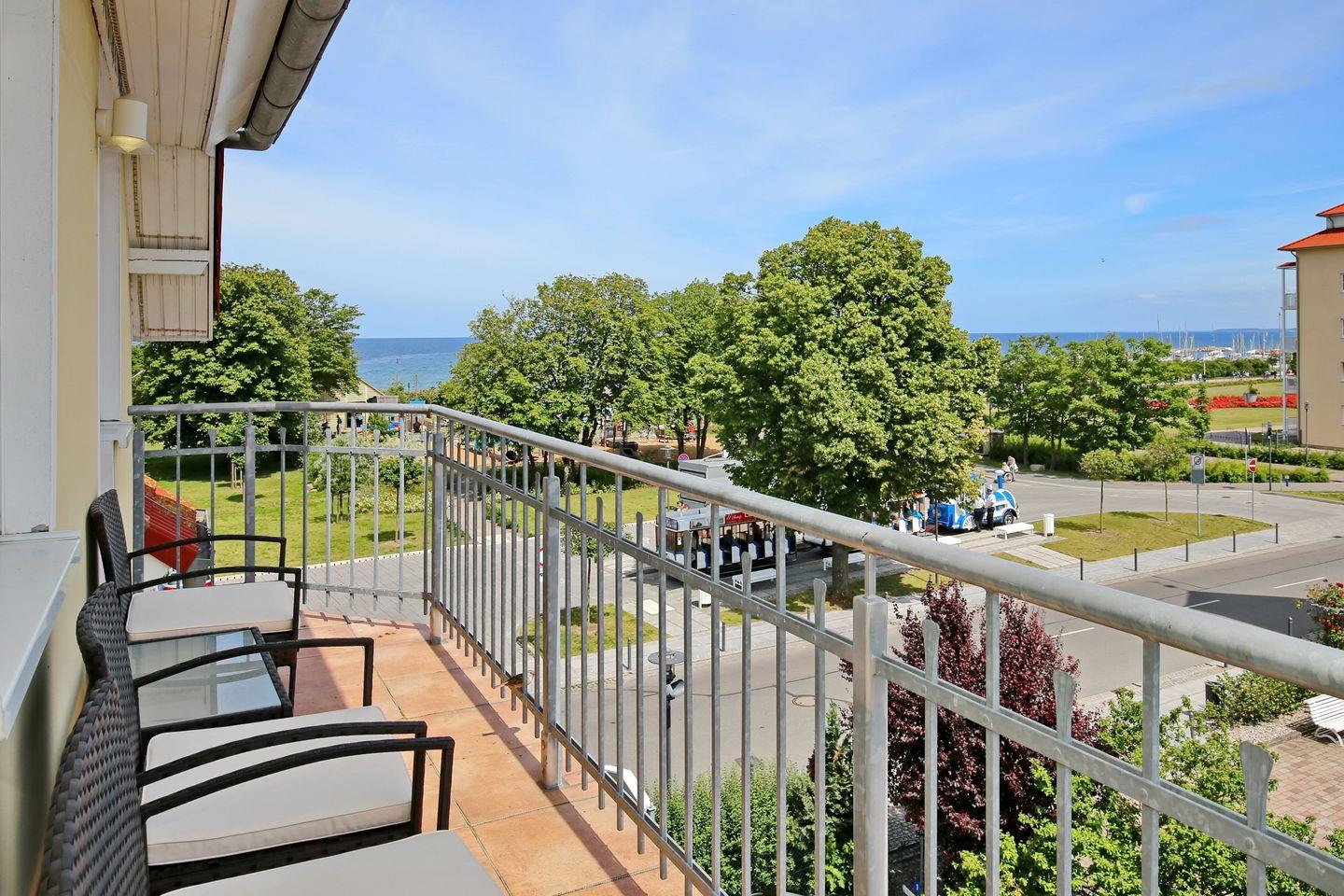 Die Ferienwohnung 320 in der Villa Hanse ist eine 4-Zimmer-Wohnung mit einer Größe von etwa 95 m². Zu der Wohnung gehören zwei Balkone.