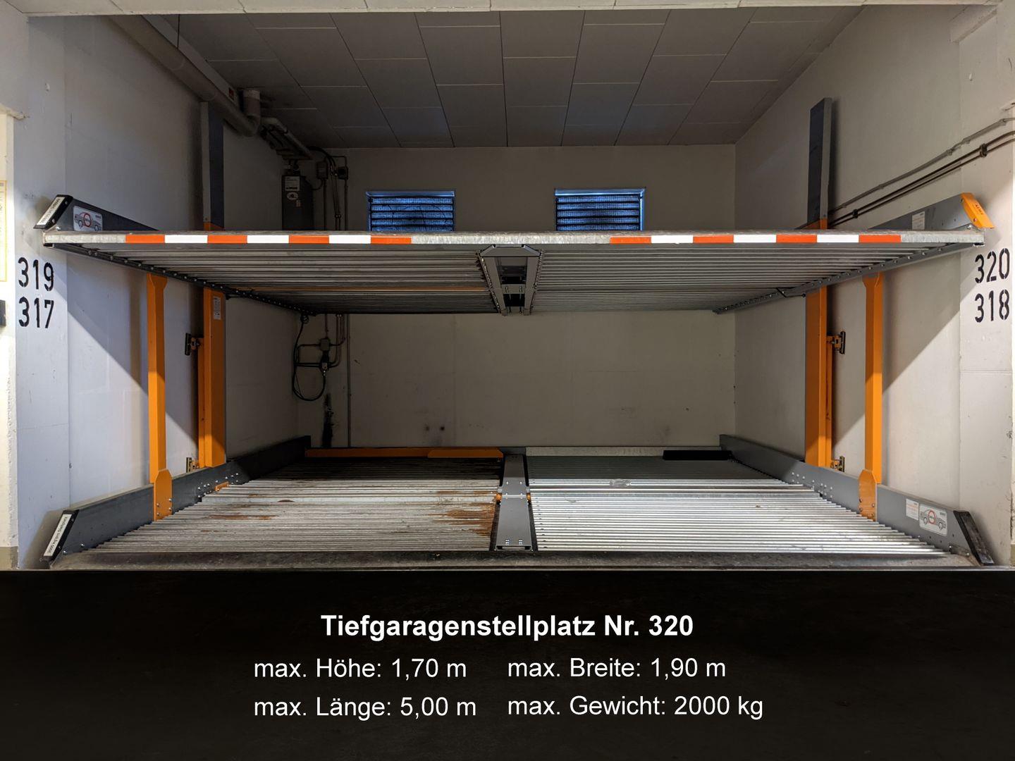 Zur Ferienwohnung gehört ein Tiefgaragenstellplatz Nr. 320 (max. Höhe 1,70 m).