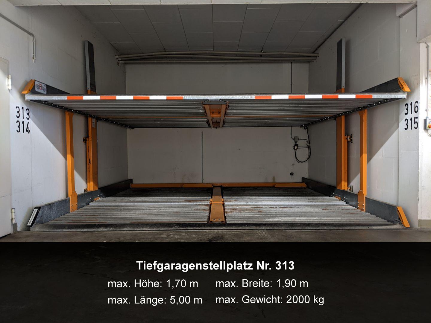 Zur Ferienwohnung gehört ein Tiefgaragenstellplatz Nr. 313 (max. Höhe 1,65 m).