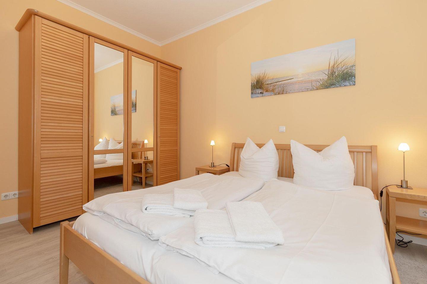 Zur Ferienanlage gehört ein eigener Wellnessbereich mit Pool, zwei Saunen, Fitness- und Ruheraum, der euch täglich zur Verfügung steht (lediglich in der 3. und 4. Kalenderwoche eines Jahres ist der Bereich auf Grund von Wartungsarbeiten geschlossen). Außerdem steht euch ein kostenfreier PKW-Stellplatz zur Verfügung. Nutzt gerne Münzwaschmaschine und -trockner in der Anlage ebenso wie den Bademantelverleih im Servicebüro. Haustiere sind in dieser Wohnung nicht zugelassen.