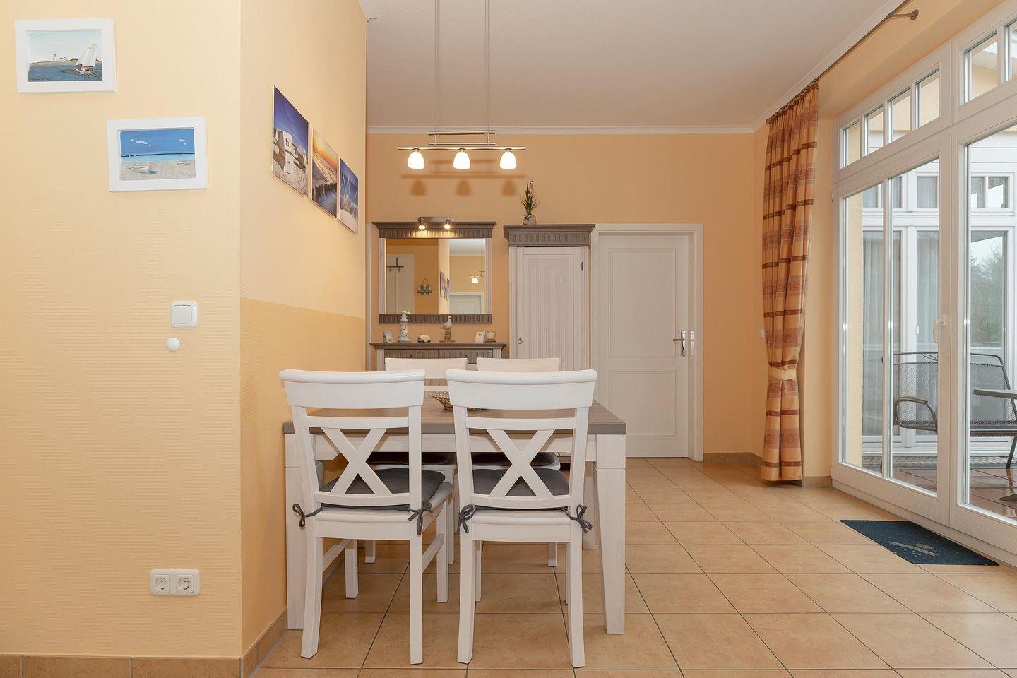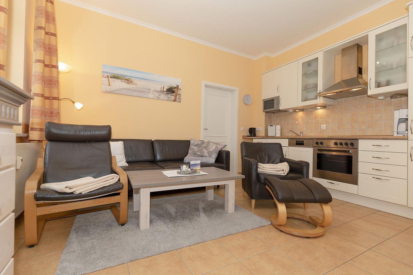 Die 56 m² große 3-Zimmer Ferienwohnung ist für bis zu 4 Personen geeignet. Besonders hervorzuheben ist die tolle Lage zwischen Ostseestrand, Promenade und Stadtwald sowie der sonnige Südbalkon des Apartments.