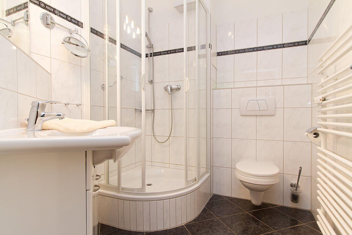 Die Nichtraucher-Ferienwohnung ist durch spezielle Matratzen und Oberbetten besonders für Allergiker geeignet und gestattet keine Haustiere. Das Bad ist mit einer Fußbodenheizung ausgestattet.