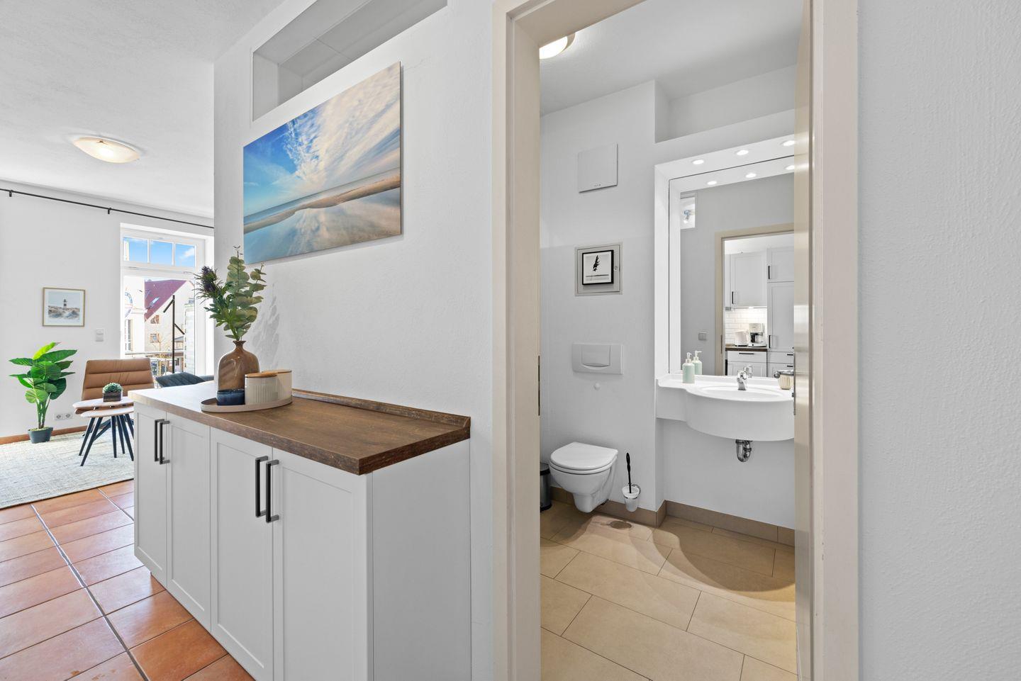 Die 48 m² große 2-Zimmer Ferienwohnung ist für bis zu 3 Personen geeignet. Besonders hervorzuheben ist der Balkon in Ost-Lage. Hier genießt ihr schon beim Frühstück das milde Meeresklima der Ostsee.