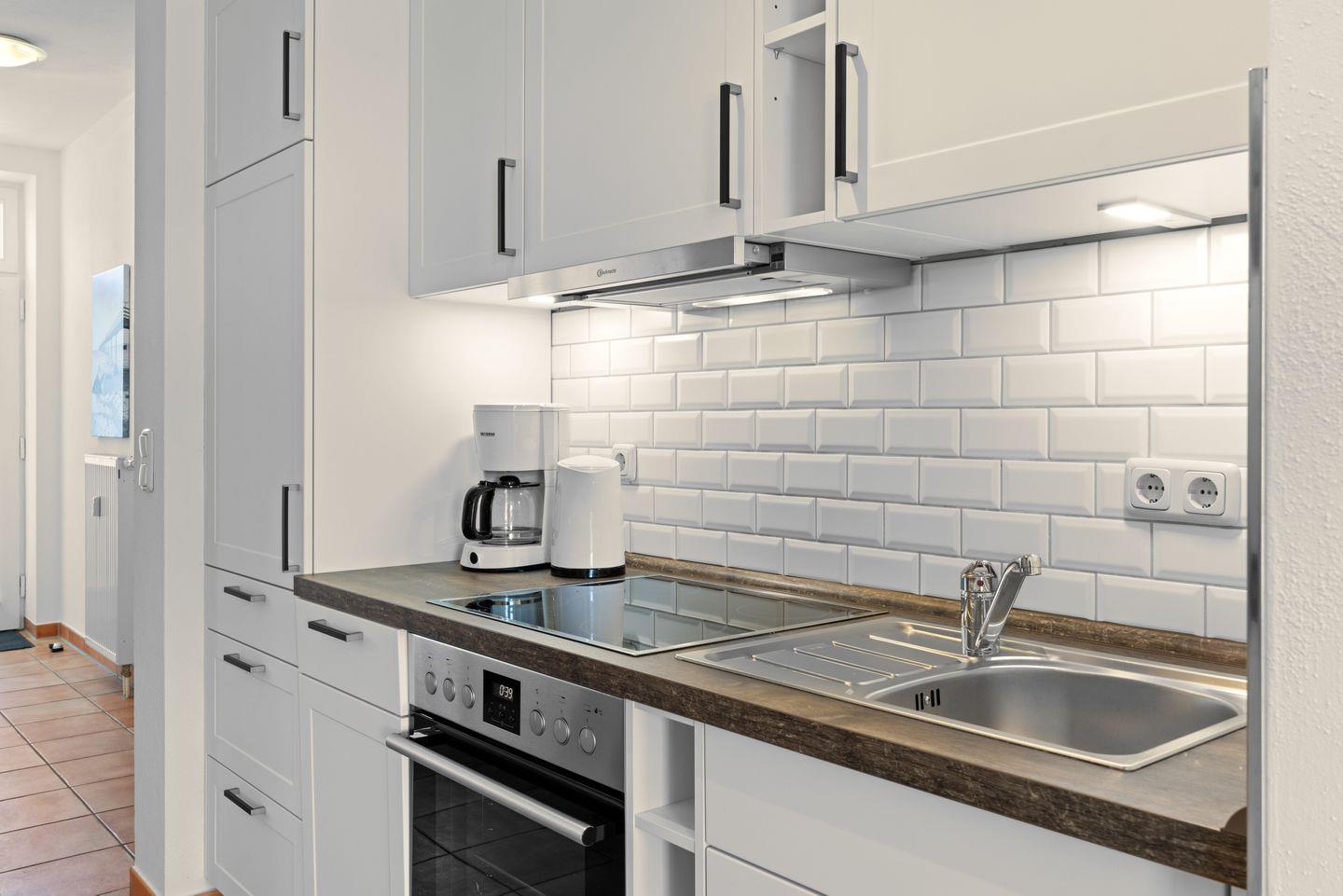 Das gemütliche Nichtraucherapartment verfügt über kostenfreies WLAN. Der Wohnbereich mit Doppelschlafcouch (1,60 m x 2,00 m), bietet eine voll ausgestattete offene Küchenzeile mit Kaffeemaschine, Toaster, Wasserkocher, Mikrowelle und Backofen sowie einen Flatscreen-TV und eine HiFi-Anlage. Das separate Schlafzimmer verfügt über ein Doppelbett (1,80 m x 2,00 m). Nach einem erlebnisreichen Urlaubstag entspannt ihr auf dem mit Gartenmöbeln ausgestatteten Balkon mit Ausblick nach Osten. Ein Kinderbett kann gegen Entgelt aufgestellt werden und auf Wunsch könnt ihr einen Hochstuhl hinzubuchen.