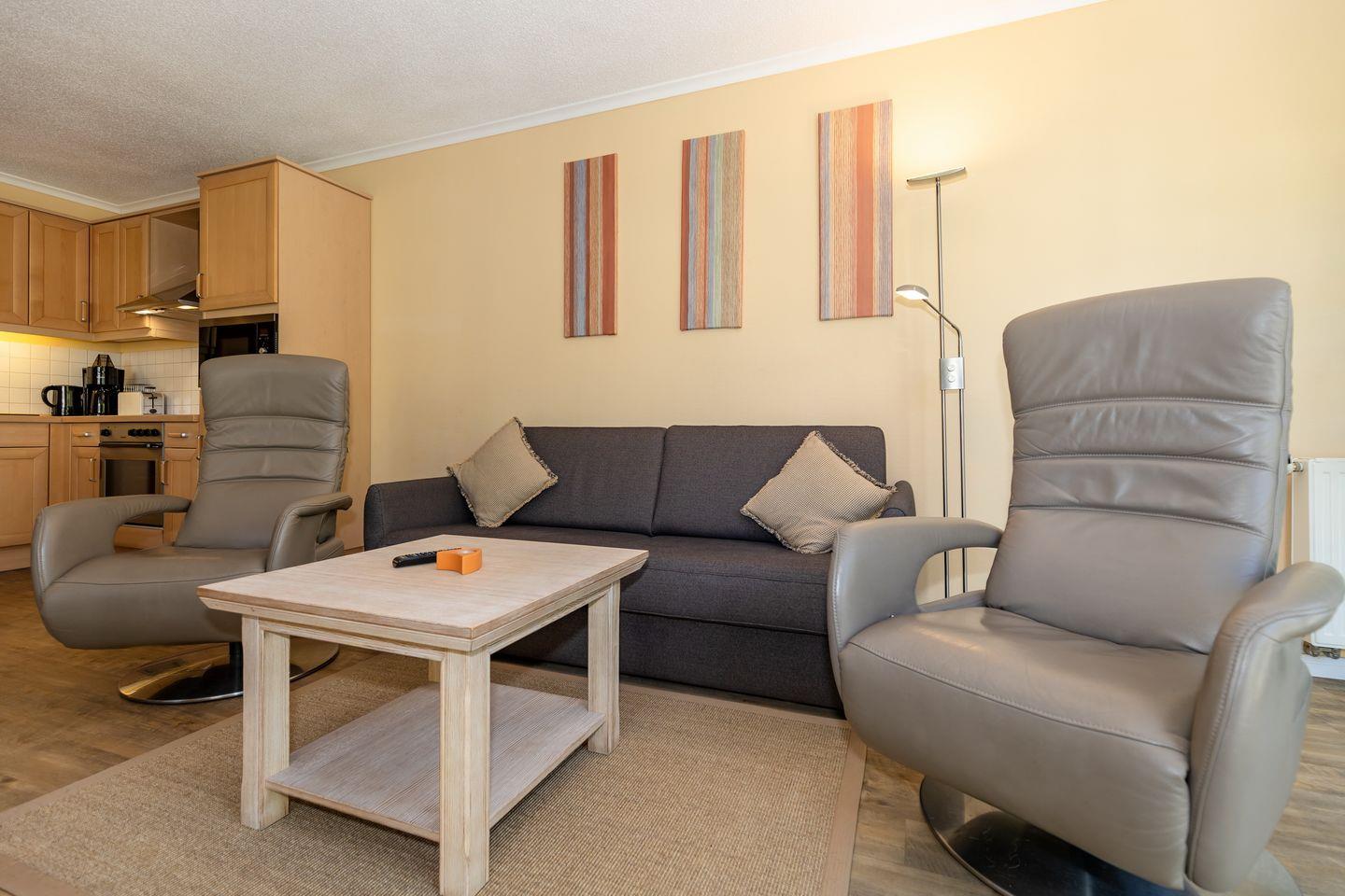 Bitte beachtet, dass es sich bei diesem Apartment um ein Nichtraucher-Apartment handelt. Haustiere sind herzlich willkommen. Unter der Wohnung befindet sich ein Restaurant mit Außenbereich. Die Ferienanlage verfügt über einen Fahrstuhl, eine Münzwaschmaschine und –trockner sowie über einen abschließbaren Abstellraum für Fahrräder. Ein Tiefgaragenstellplatz im Doppelparksystem mit einem Maximalgewicht von 2.000 kg (max. Durchfahrtshöhe 1,70 m, max. Fahrzeuglänge 5 m, max. Fahrzeugbreite 1,90 m) kann auf Wunsch gegen Aufpreis hinzugebucht werden. Bademäntel erhaltet ihr gegen eine kleine Leihgebühr in unserem Service-Büro.