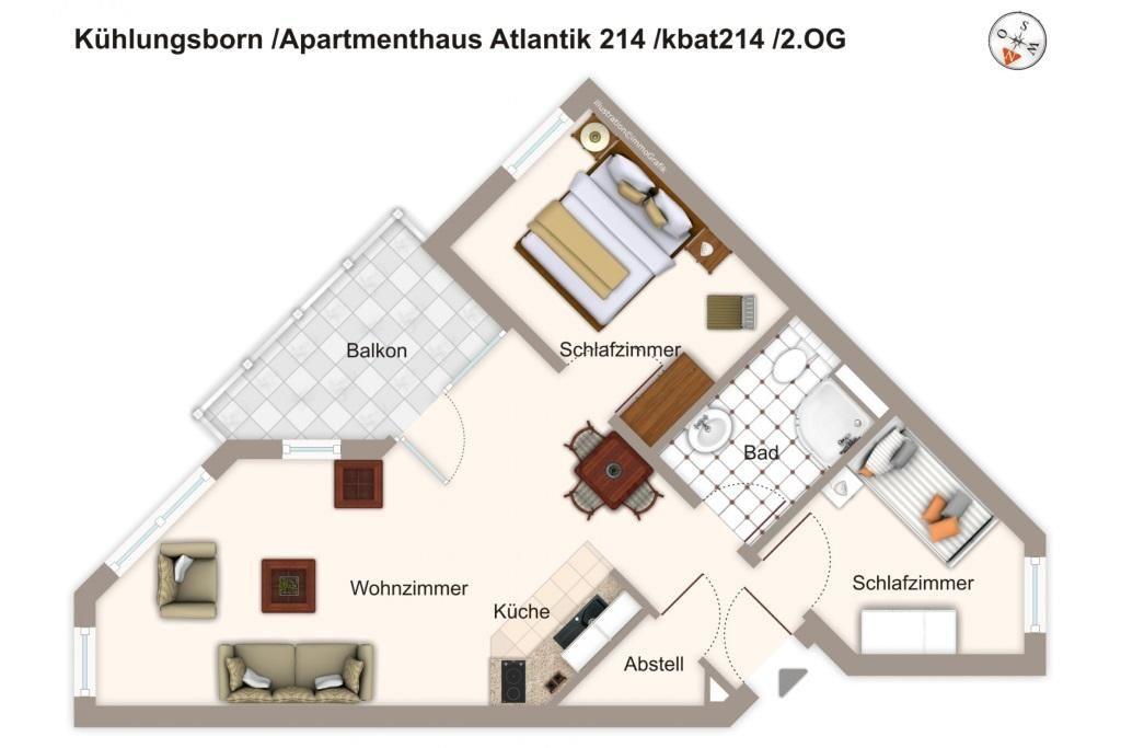 Die Apartment-Anlage „Apartmenthaus Atlantik“ in Kühlungsborn verfügt über Premium-Ferienwohnungen mit hohem Wohnkomfort und direkt am Strand von Kühlungsborn: Das 3-Zimmer-Apartment bietet mit 53 qm und einem Balkon Platz für 4 Personen. .