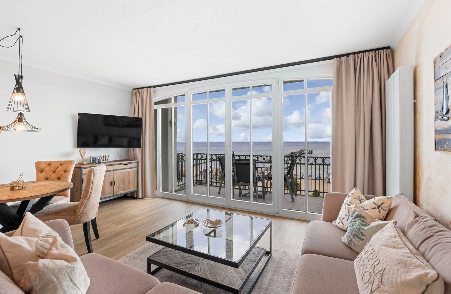 Komfortable Ferienwohnungen in direkter Strandlage findet ihr in der Apartment-Anlage „Apartmenthaus Atlantik“ in Kühlungsborn: Das 52 qm große 3-Zimmer Apartment mit Balkon bietet Platz für 3 Personen und verfügt über einen einmalig-schönen Meerblick!