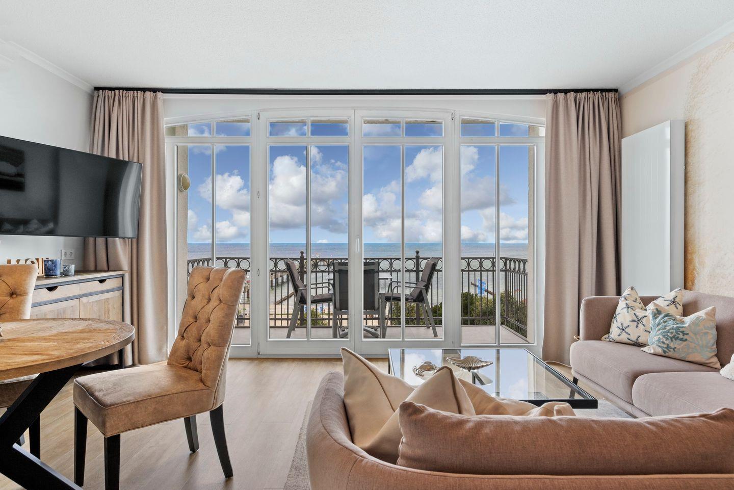 Das Apartment bietet euch zwei Schlafzimmer mit einem Doppelbett bzw. einem Einzelbett und einem Safe sowie einen Wohnbereich mit Vinylboden und Balkon. Das Elternschlafzimmer verfügt über einen eigenen Flatscreen-TV. Vom Balkon aus habt ihr einen großartigen Blick auf das Meer, den Strand und die Seebrücke!