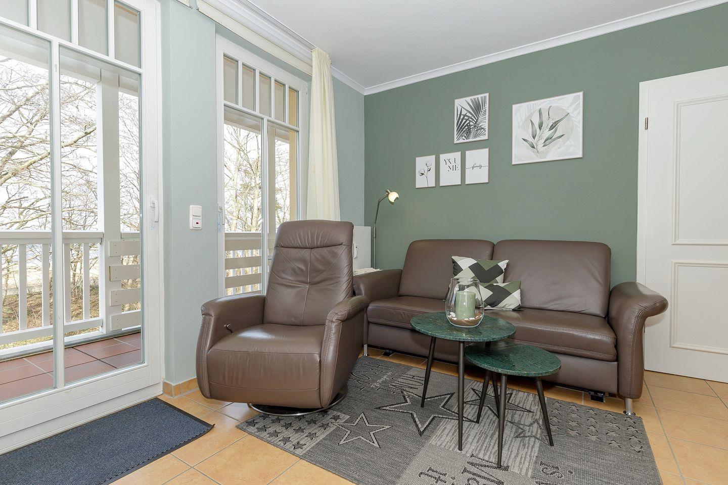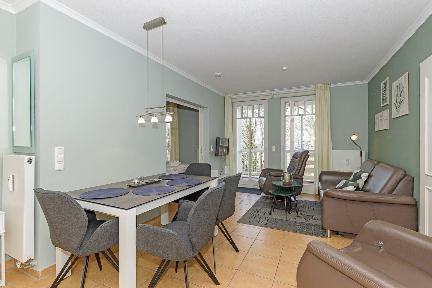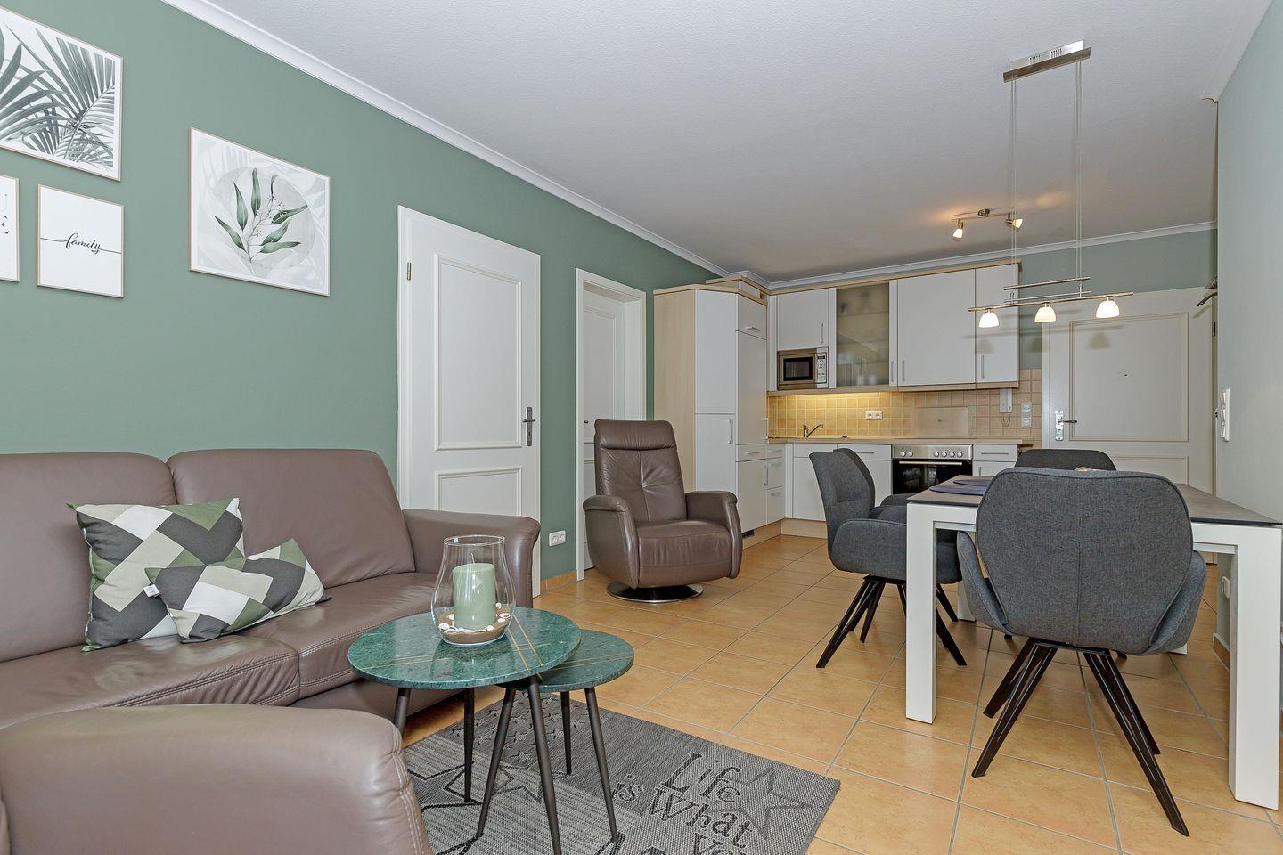 Die 50 m² große 3-Zimmer Ferienwohnung ist für bis zu 4 Personen geeignet. Besonders hervorzuheben ist die geschmackvolle Einrichtung und der zur Ostsee gelegene Balkon .