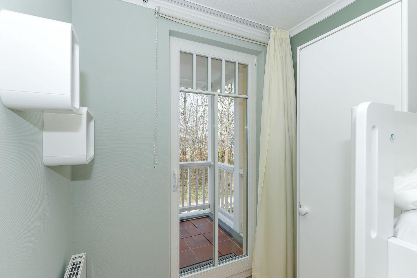 Auf dem mit Gartenmöbeln ausgestatteten, zur Seeseite gelegenen Balkon lässt sich herrlich entspannen und gesellig beisammen sitzen. Im Herbst und Winter, wenn die Bäume an der Uferpromenade ihre Blätter verloren haben, genießt ihr sogar einen Ausblick bis zum Meer. Der Balkon ist vom Wohn-Essbereich aus begehbar.