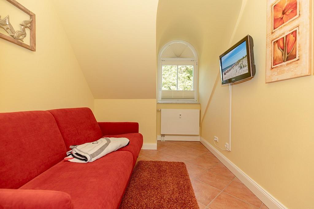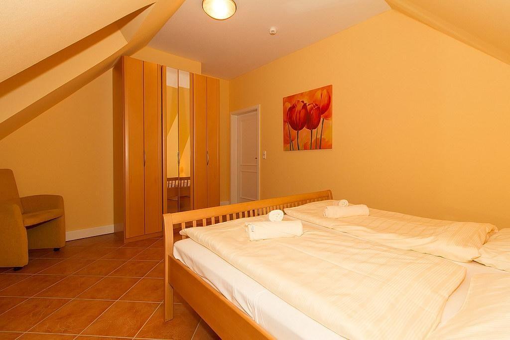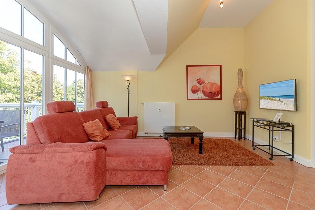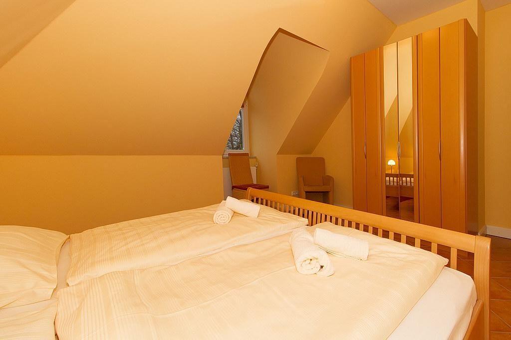 Die Ferienwohnung befindet sich im Dachgeschoss auf der Nordwestseite der Apartmentanlage im Haus 2 und liegt zwischen Ostseestrand und Stadtwald.