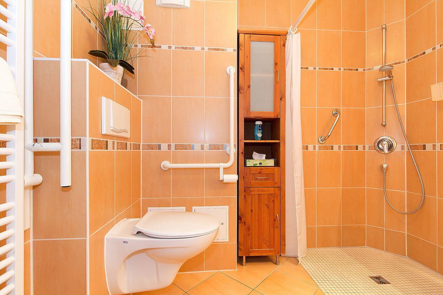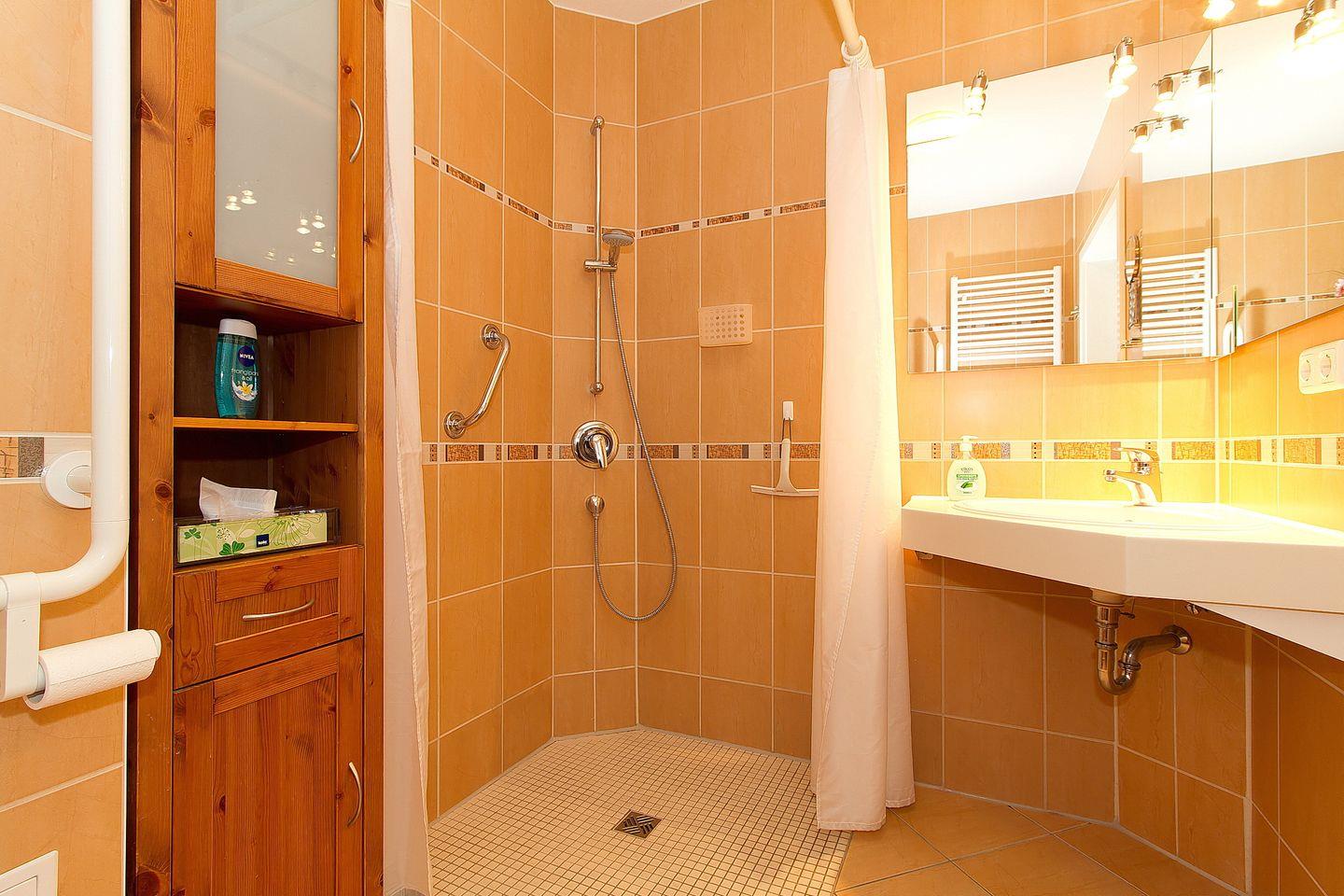 Das Nichtraucher-Apartment verfügt über zwei Schlafbereiche. Neben einem Doppelbett steht euch ein Einzelbett und ein Hochbett zur Verfügung. Für das Einzelbett ist ein Gitteraufsatz vorhanden, so dass das Bett zum sicheren Kinderbett umfunktioniert werden kann. Zudem verfügt die Unterkunft über ein gemütliches Wohnzimmer, ein Bad mit ebenerdiger Dusche und eine erhöhte Toilette mit zwei Haltegriffen. Das Waschbecken ist mit einem Rollstuhl unterfahrbar und die barrierearme Terrasse in Südlage bietet euch einen Ausblick ins Grüne. Eine voll ausgestattete offene Küche mit Wasserkocher, Kaffeemaschine, Toaster, Backofen und Geschirrspüler lädt zum gemeinsamen Koche ein. Ein Föhn, Bügeleisen mit Bügelbrett, zwei TV Geräte und eine HiFi-Anlage mit DVD-Player ergänzen die Ausstattung des Apartments. Das WLAN steht euch kostenfrei zur Verfügung.