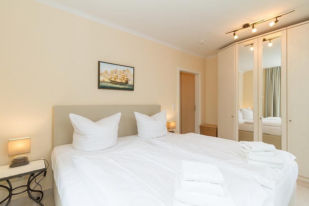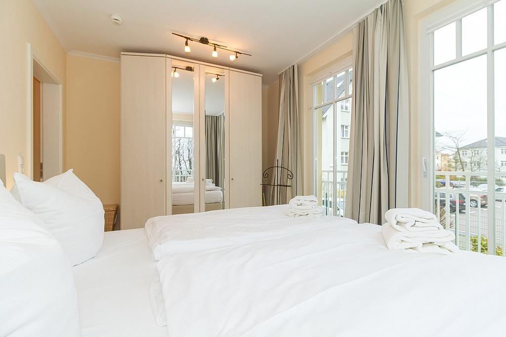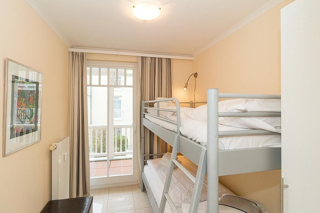 Das allergikerfreundlich eingerichtete Nichtraucher-Apartment mit eingeschränktem Meerblick beinhaltet zwei Schlafzimmer, ausgestattet mit einem Boxspring- bzw. einem Etagenbett. Das Kinderzimmer hat einen eigenen Balkon mit Blick zur Ostsee. Im Wohnbereich befinden sich eine TV-HiFi-Anlage mit Flachbildschirm, DVD-Player, Radio und CD-Player. Bücher und Spiele stehen euch ebenfalls zur Verfügung.