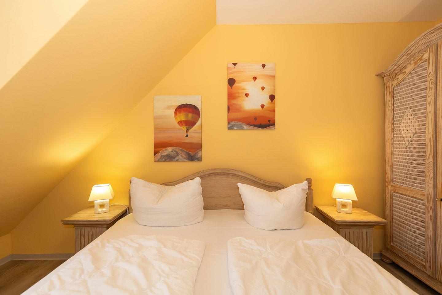 Die offene, voll ausgestattete Küche mit Backofen, Geschirrspüler und Mikrowelle sowie ein Bügeleisen und Bügelbrett, ein Flachbildfernseher und eine HiFi-Anlage vervollständigen die Ausstattung. Der WLAN Anschluss steht euch kostenfrei zur Verfügung. Auf Wunsch und gegen Entgelt sind Hochstuhl und Kinderbett verfügbar. Das Kinderbett ist in beiden Schlafzimmern stellbar.