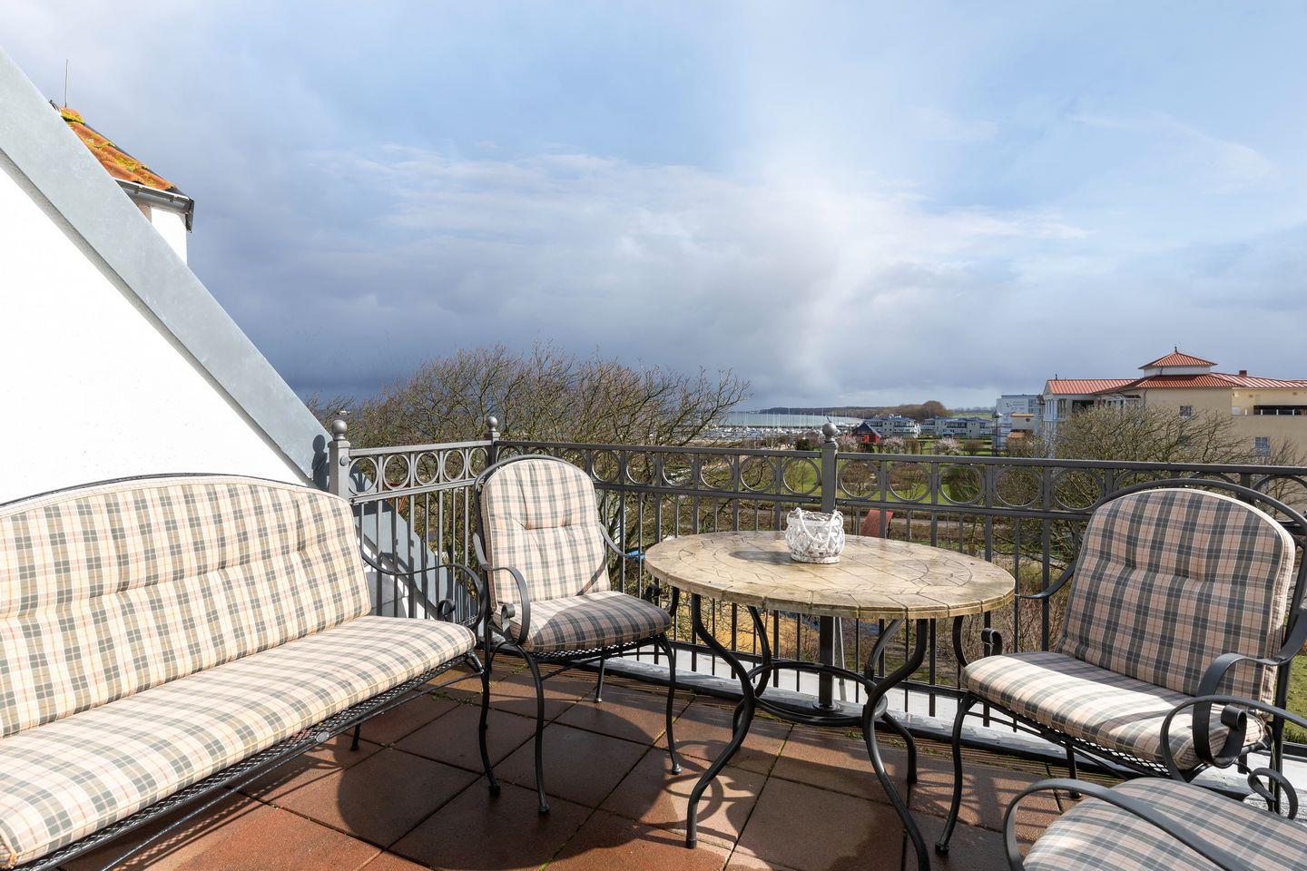 Ferienwohnung an der Ostsee mit Balkon und Blick auf den Yachthafen und die See!
