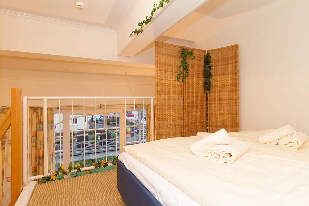 Das Nichtraucher-Apartment verfügt über kostenfreies WLAN und eine voll ausgestattete offene Küche mit Backofen, Geschirrspüler, Wasserkocher, Kaffeemaschine, Toaster, Eierkocher und Tiefkühlfach. Der kombinierte Wohn- und Essbereich mit Blick auf die Ostsee verfügt über eine TV-HiFi-Anlage mit Flachbild-TV (32 Zoll). Sowohl der Esstisch, als auch der behagliche Sitzbereich bieten genügend Platz, um schöne Stunden beim Frühstück oder nach einem ereignisreichen Tag am Strand zu verbringen. Das separate Schlafzimmer ist ausgestattet mit einem großen Doppelbett (2 x 0,80 x 2,00) . Ein weiteres Doppelbett (2 x 0,80 x 2,00) befindet sich auf einer Empore in der Wohnung und ist nur über eine Treppe erreichbar. Ein Kinderbett kann gegen Entgelt aufgestellt werden und auf Wunsch könnt ihr einen Hochstuhl hinzubuchen. Von der Terrasse habt ihr einen Blick bis zur Ostsee. Der Balkon ist vom Wohn-/ Essbereich zugänglich.