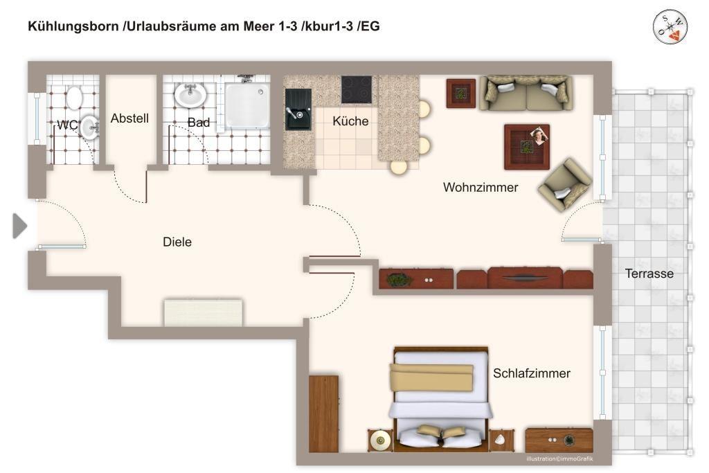 Die Urlaubsräume am Meer in Kühlungsborn verfügen über geschmackvoll eingerichtete Apartments. Das familienfreundliche 2-Zimmer-Apartment mit Terrasse bietet mit 64 qm ausreichend Platz für 3 Personen.