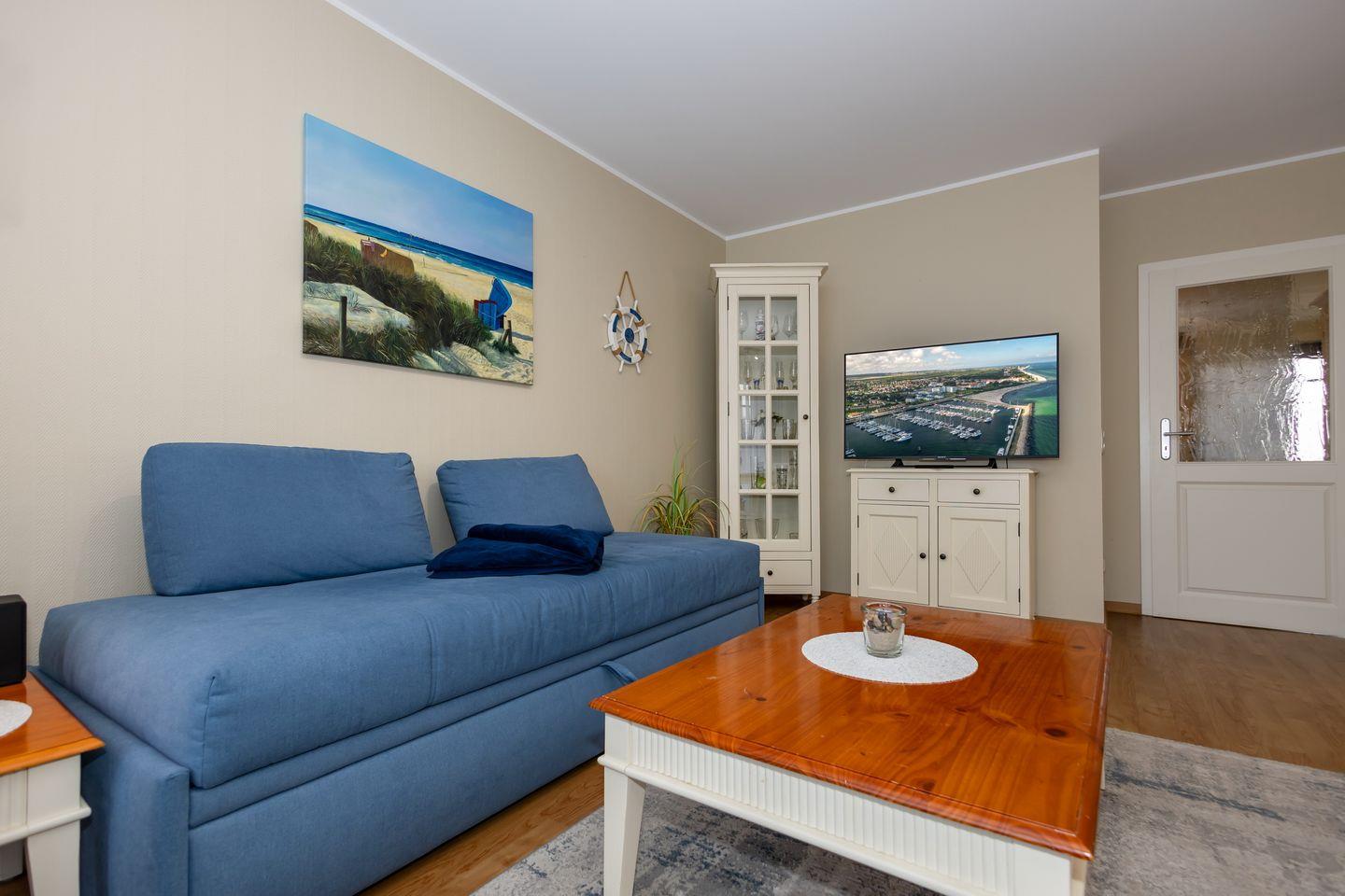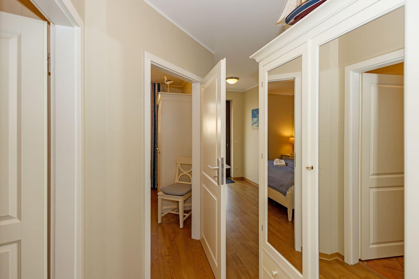 Das stilvolle Apartment befindet sich im ersten Obergeschoss der beliebten Ferienwohnungsanlage in unmittelbarer Nähe zum Yachthafen und verfügt über seitlichen Meerblick.