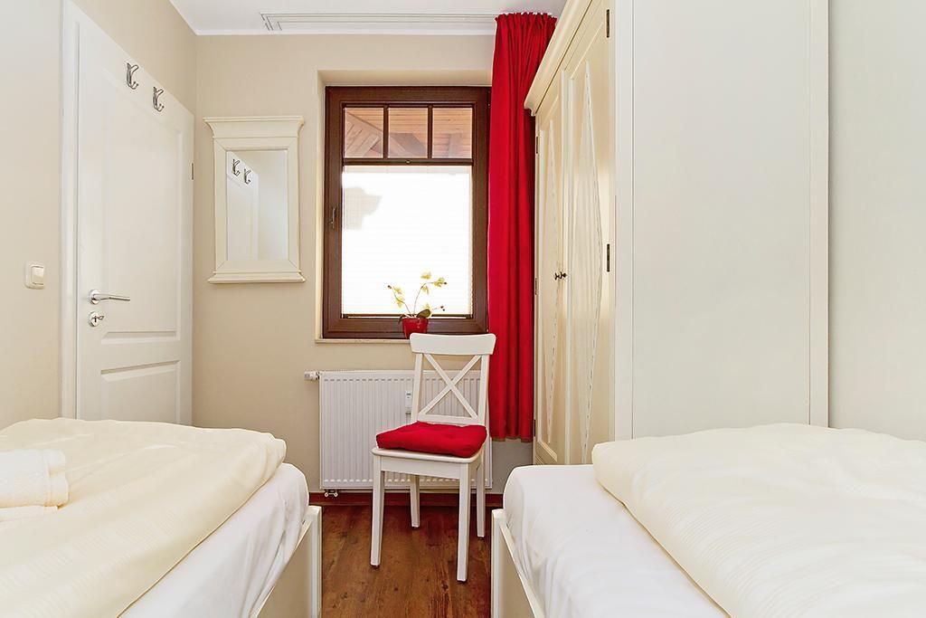 Die Ferienwohnung verfügt kostenfreies WLAN. Es stehen euch zwei separate Schlafzimmer zur Verfügung, eines davon mit einem Doppelbett und Flatscreen-TV, ein weiteres mit zwei Einzelbetten. Das hochwertige und komfortable Interieur der Ferienwohnung ergibt sich aus einer voll ausgestatteten offenen Küche mit Wasserkocher, Kaffeemaschine, Toaster, Backofen, Mikrowelle mit Grillfunktion und Geschirrspüler sowie aus einem geschmackvollen Wohn-Essbereich mit Flatscreen-TV und HiFi-Anlage. Das moderne Apartment verfügt über den Luxus einer eigenen Sauna im großzügigen Badezimmer des Penthouses (2 Euro pro Benutzung); Dusche und WC liegen separat voneinander. Auf der 45 qm großen Dachterrasse bietet sich euch ein wunderschöner Ausblick auf die Seebrücke und den Yachthafen in Kühlungsborn. Das Apartment verfügt über Bügeleisen, Bügelbrett und Minisafe. Ein Kinderbett kann gegen Entgelt aufgestellt werden und auf Wunsch könnt ihr einen Hochstuhl hinzubuchen.