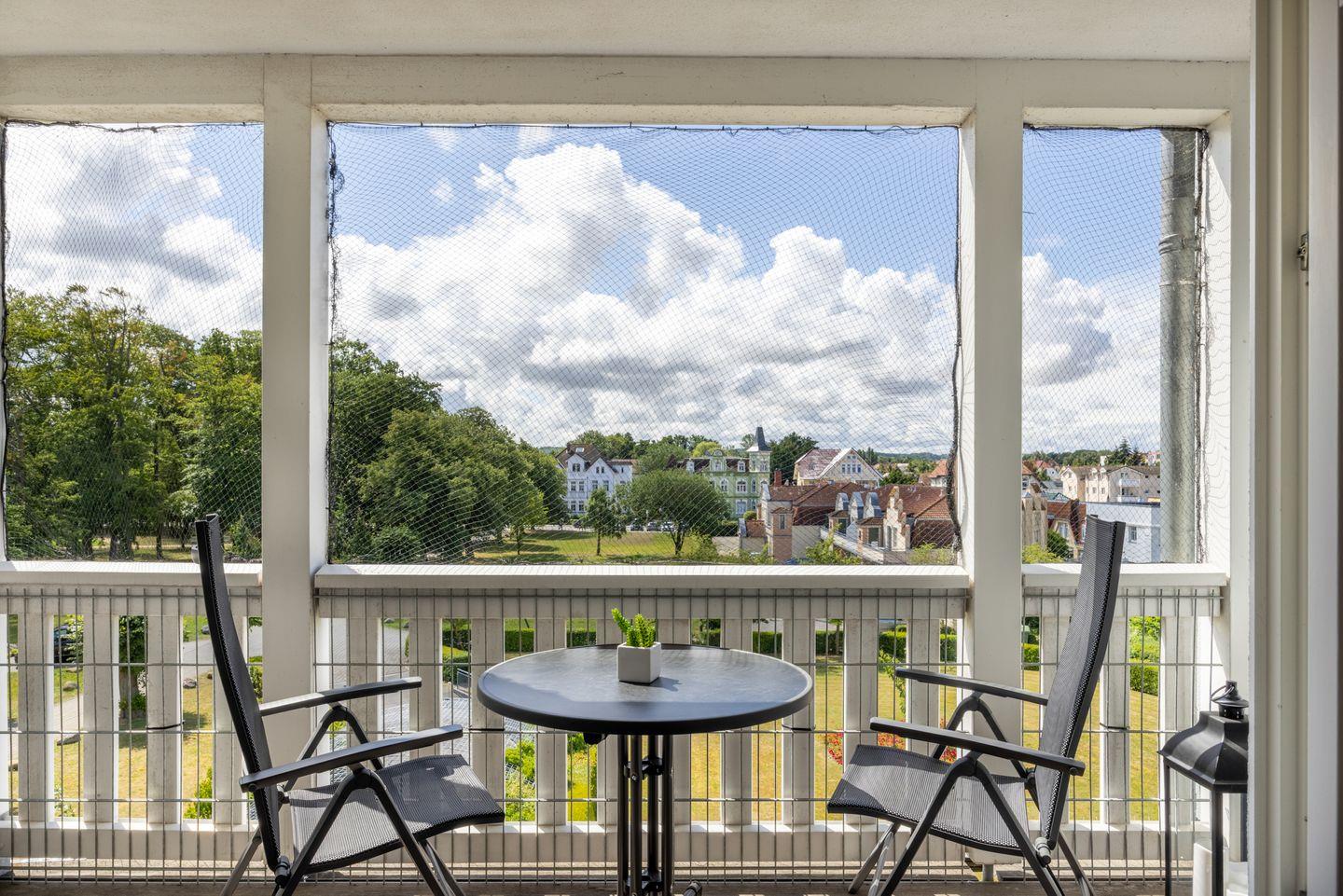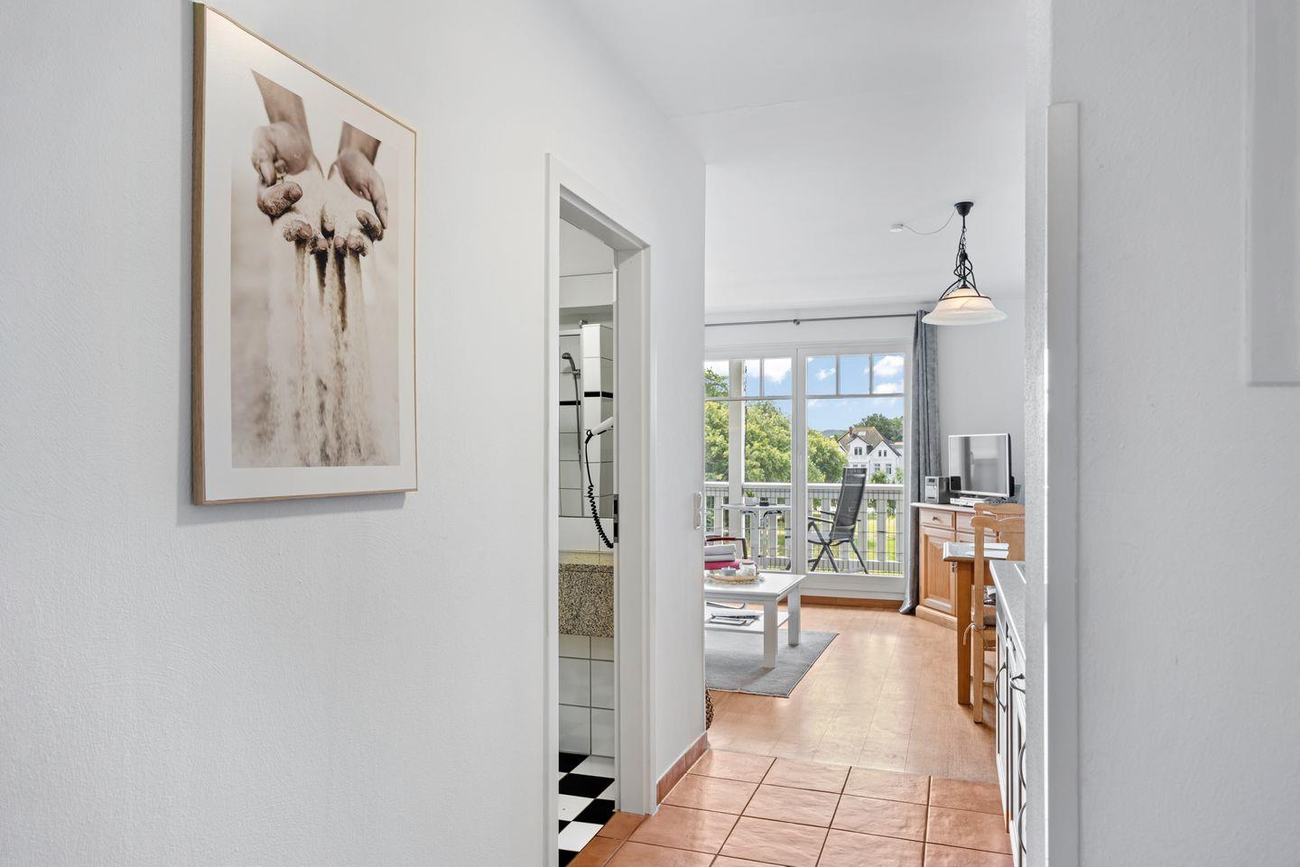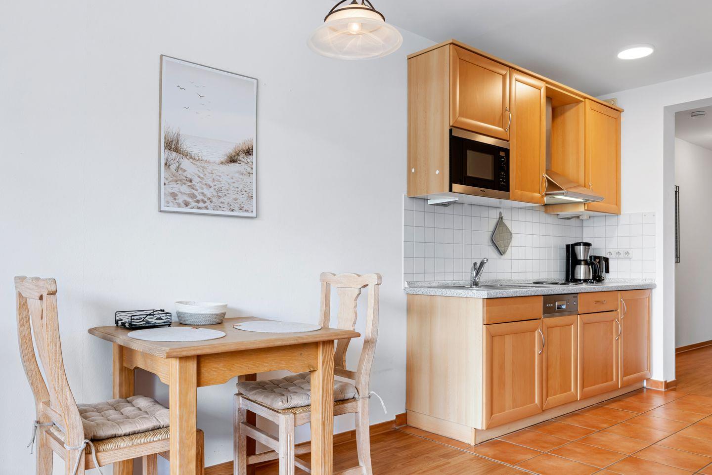Das 39 m² große 2-Zimmer-Apartment ist für bis zu 2 Personen geeignet. Besonders hervorzuheben ist die direkte Strandlage der Apartmentanlage und die nach Süden gelegene Loggia mit Blick ins Grüne. Hier könnt ihr den ganzen Tag das milde Ostseeklima und die Sonne genießen.