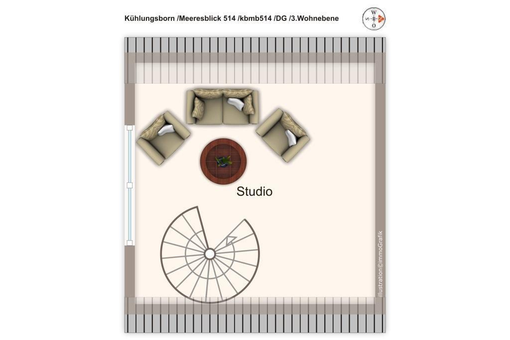 Die 84 m² große 3-Zimmer-Turmwohnung erstreckt sich über drei Etagen und ist für bis zu 4 Personen geeignet. Besonders hervorzuheben ist die direkte Strandlage der Apartmentanlage und der großartige Meerblick aus dem Apartment und von dem nach Norden gelegenen Balkon auf die Ostsee.