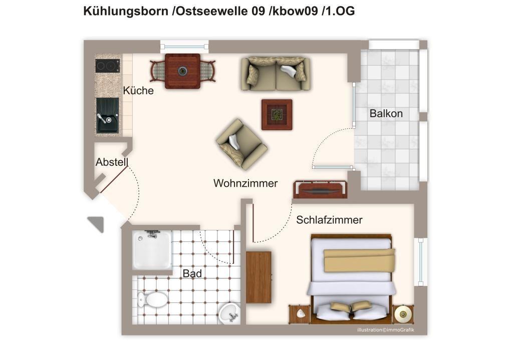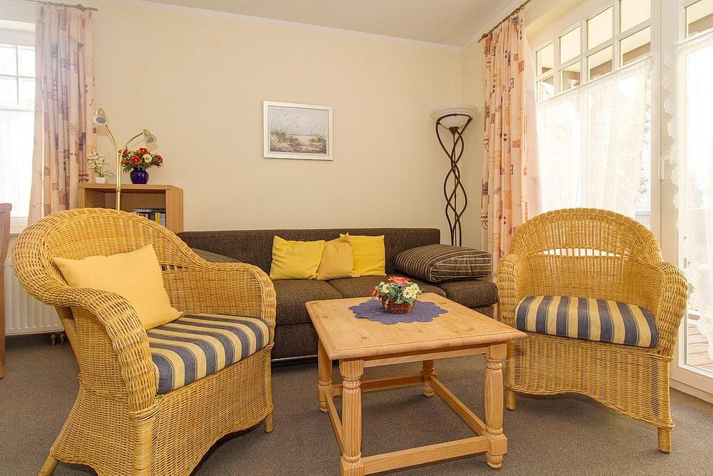 Das Nichtraucher-Apartment verfügt über eine voll ausgestattete offene Küche mit einer Mikrowelle, einem Toaster, einer Kaffeemaschine, einem Wasserkocher, einem Mixer und einer Geschirrspülmaschine. Im kombinierten Wohn- und Essbereich stehen euch ein ein Flachbild-TV, DVD-Player, HiFi-Anlage und eine Schlafcouch (1,40 x 1,90 m) zur Verfügung. Sowohl der Esstisch, als auch der Sitzbereich bieten genügend Platz, um schöne Stunden beim Frühstück oder nach einem ereignisreichen Tag am Strand zu verbringen. Im Apartment findet ihr zudem Bücher für die Urlaubslektüre. Die Wohnung verfügt über ein separates Schlafzimmer mit Doppelbett( 2 x 0,90 x 2,00 m). Die Wohnung verfügt über einen nördlich gelegenen und überdachten Balkon mit Gartenmöbeln vom dem aus ihr dem Meeresrauschen der nahen Ostsee lauschen könnt.