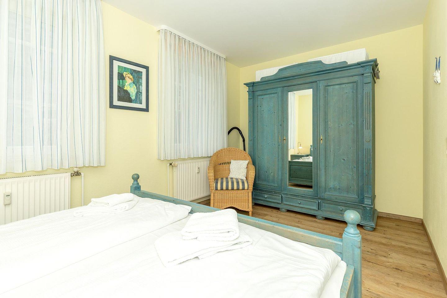 Die 36 m² große 2-Zimmer-Ferienwohnung ist für 2 Personen ideal geeignet. Besonders hervorzuheben ist die ruhige Lage in Strandnähe und die südlich gelegene Loggia des Apartments.