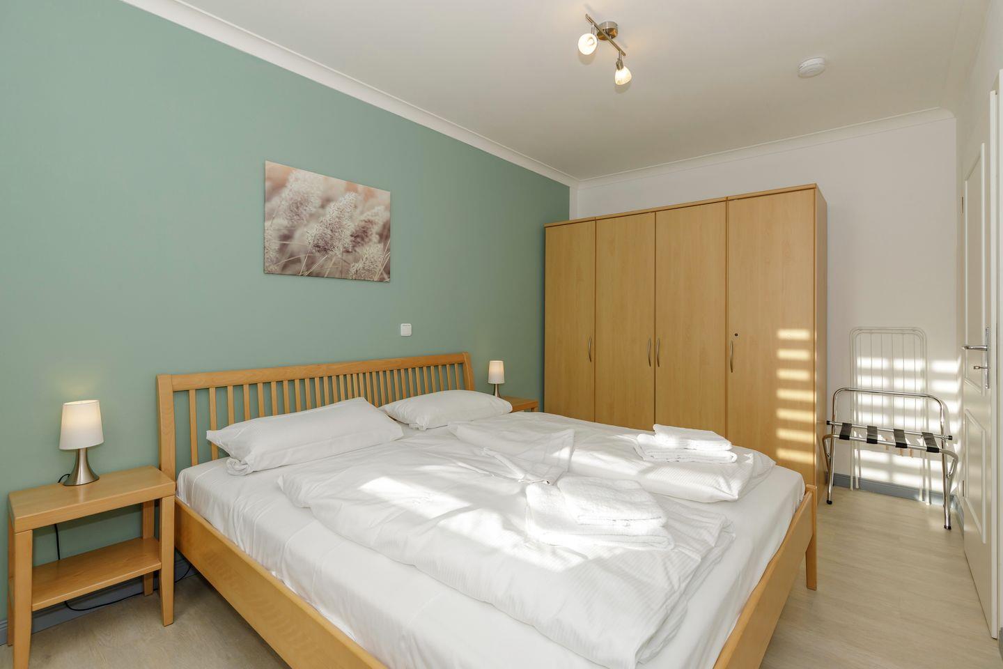 Das gemütliche Nichtraucher-Apartment verfügt über kostenfreies WLAN und eine voll ausgestattete offene Küche mit einem Backofen, einem Toaster, einer Kaffeemaschine, einem Wasserkocher und einer Geschirrspülmaschine. Im kombinierten Wohn- und Essbereich steht euch ein Flachbild-TV zur Verfügung. Sowohl der Esstisch, als auch der behagliche Sitzbereich bieten genügend Platz, um schöne Stunden beim Frühstück oder nach einem ereignisreichen Tag am Strand zu verbringen. Das separate Schlafzimmer ist ausgestattet mit einem großen Doppelbett (2 x 0,90 x 2,00) . Ein Kinderbett kann gegen Entgelt aufgestellt werden und auf Wunsch könnt ihr eine Kleinkindausstattung hinzubuchen. Auf dem südlich gelegenen Balkon genießt ihr den ganzen Tag das milde Ostseeklima und die Sonne.