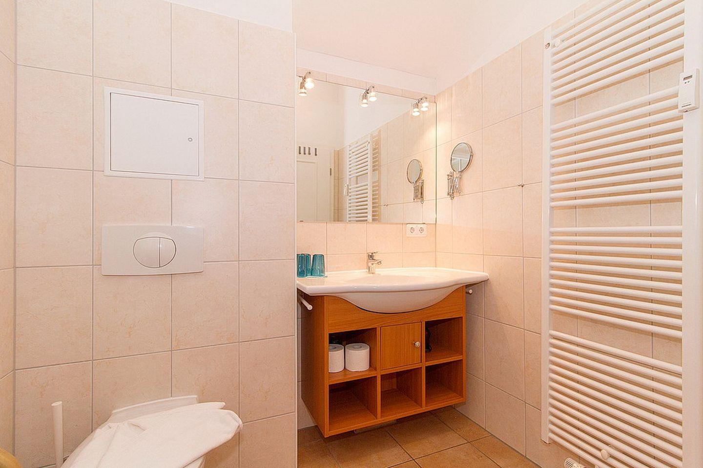 Der hauseigene Saunabereich in der Apartmentanlage mit finnischer Sauna, Softsauna, Ruheraum und Saunahof steht euch täglich nach Anmeldung während eures Aufenthaltes kostenfrei zur Verfügung. Bitte beachtet, dass es sich bei diesem Apartment um ein Nichtraucher-Apartment handelt. Haustiere sind willkommen. Die Ferienanlage verfügt über eine Münzwaschmaschine und -trockner, einen kostenfreien Parkplatz und geschützte Abstellmöglichkeiten für Fahrräder im Keller.