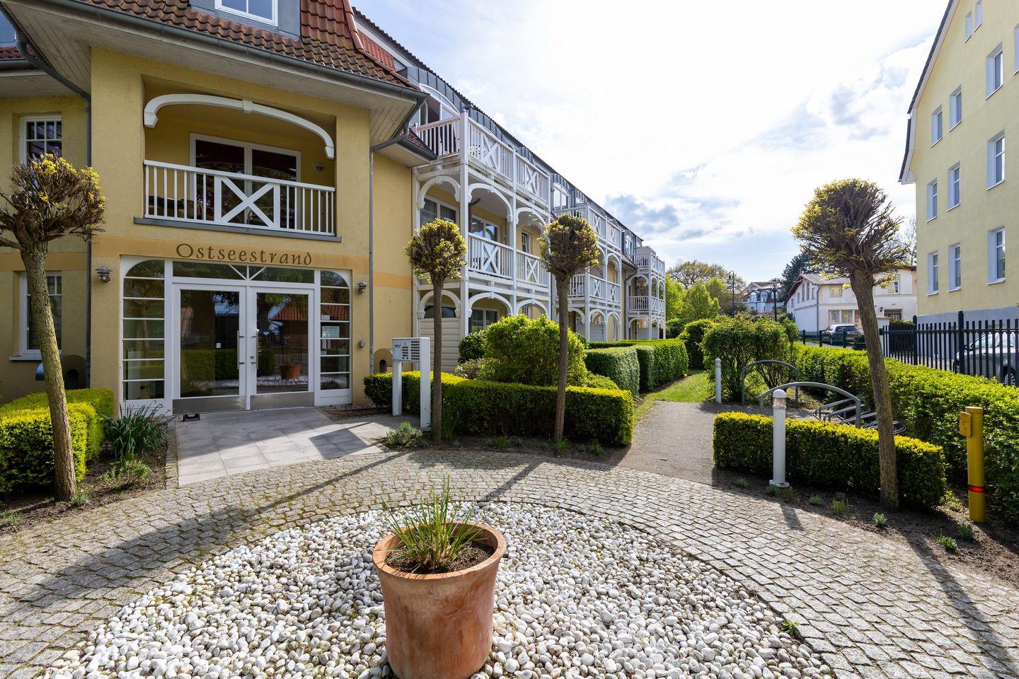 Das hell und freundlich eingerichtete Apartment befindet sich im zweiten Obergeschoss der charmanten Ferienanlage. Die Ostsee und der weiße Sandstrand sind nur 100 m entfernt und in wenigen Gehminuten erreicht. Hier könnt ihr das wohltuende Meeresklima z.B. bei ausgiebigen Spaziergängen oder gemütlichen Stunden im Strandkorb genießen. In der unmittelbaren Umgebung findet ihr Einkaufsmöglichkeiten, Restaurants und Cafés sowie reizvolle Freizeitangebote und Ausflugsziele.
