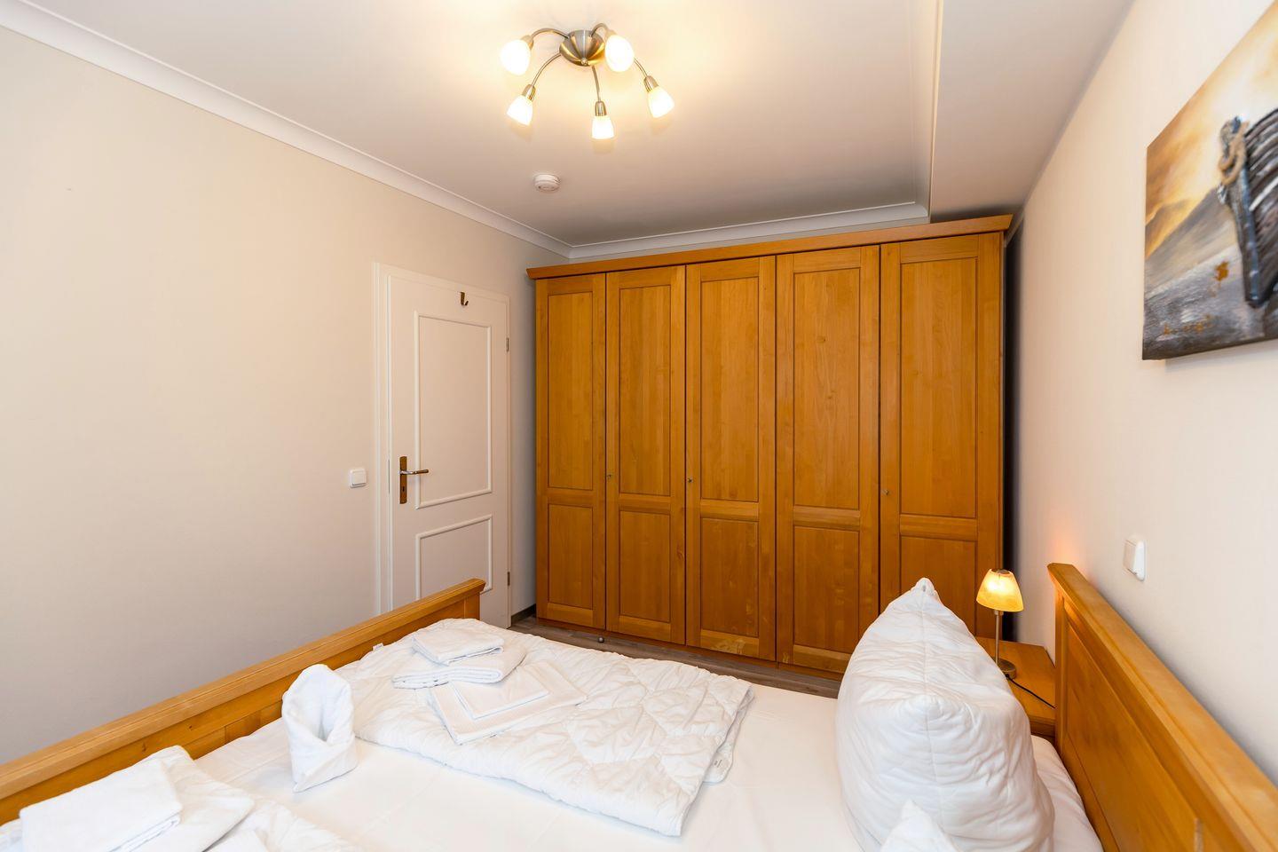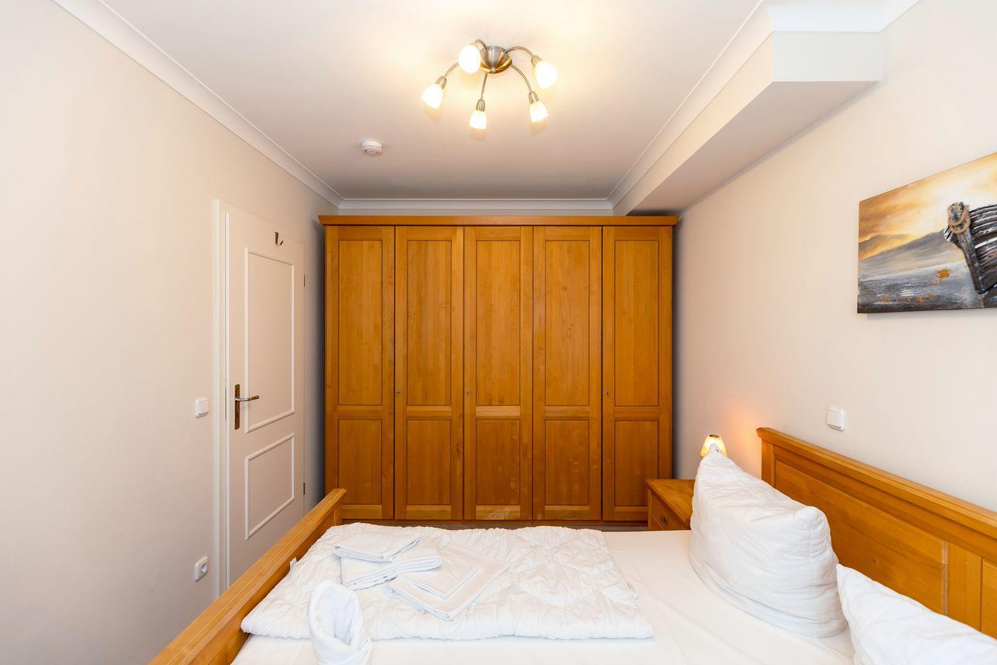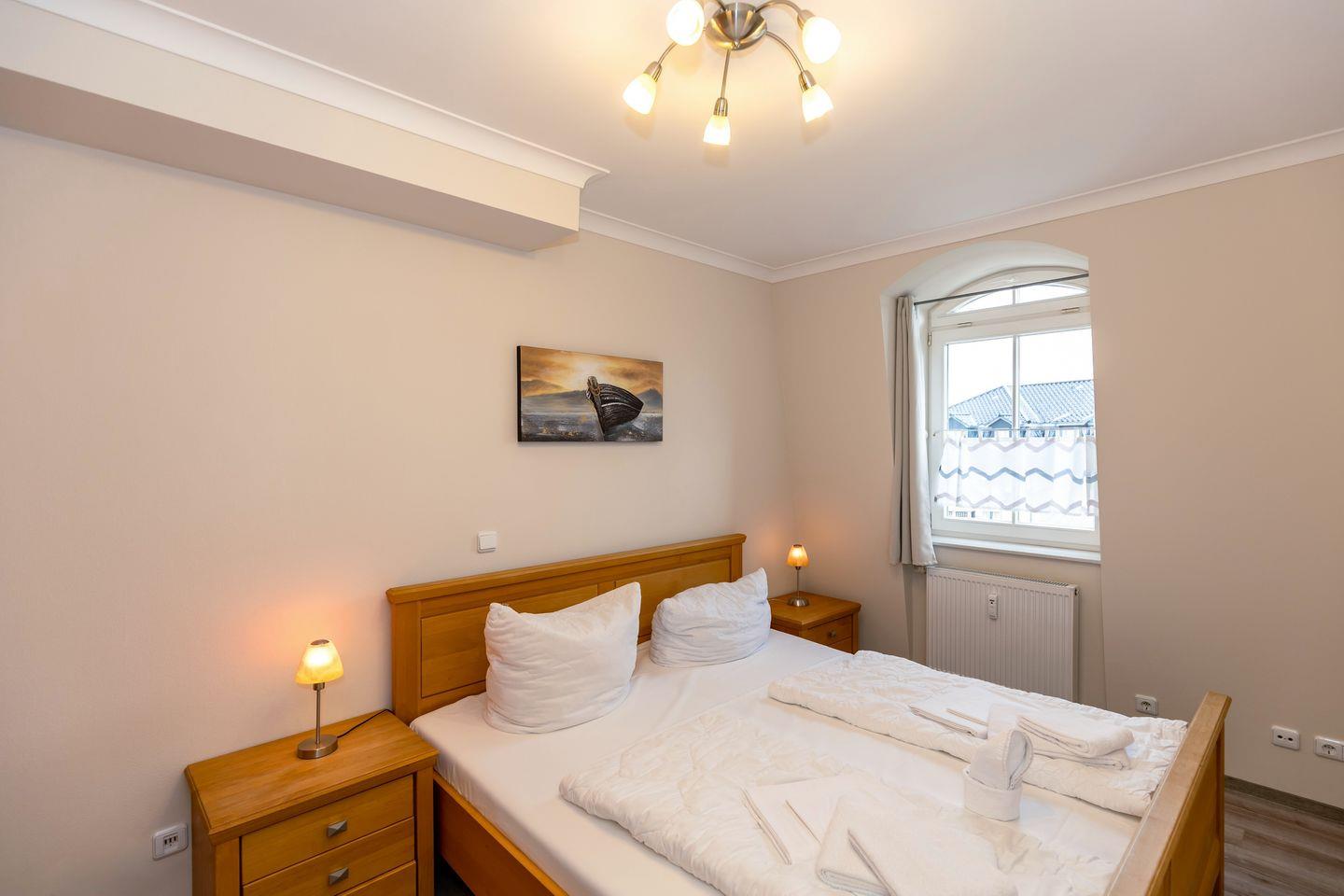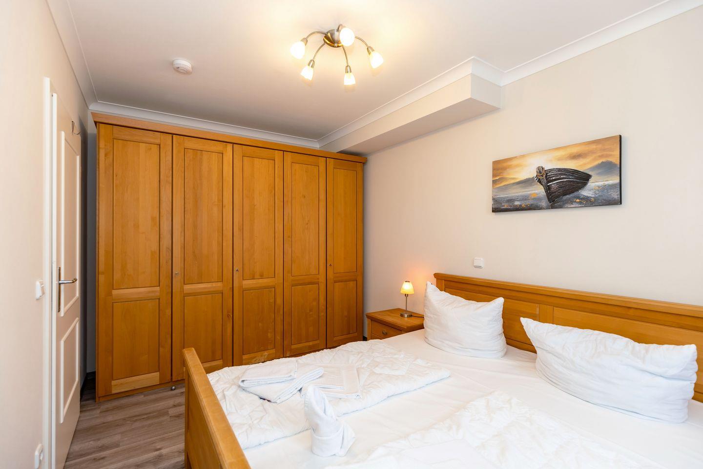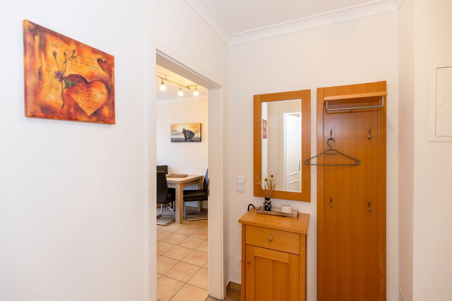Das gemütliche Nichtraucher-Apartment verfügt über kostenfreies WLAN und eine voll ausgestattete offene Küche mit einem Backofen, einer Mikrowelle, einem Toaster, einer Kaffeemaschine, einem Wasserkocher und einer Geschirrspülmaschine. Im kombinierten Wohn- und Essbereich stehen euch eine HiFi-Anlage, ein Flatscreen-TV und eine Doppelschlafcouch zur Verfügung. Sowohl der Esstisch, als auch der behagliche Sitzbereich bieten genügend Platz, um schöne Stunden beim Frühstück oder nach einem ereignisreichen Tag am Strand zu verbringen. Das separate Schlafzimmer ist ausgestattet mit einem großen Doppelbett (2 x 0,90 x 2,00). Ein Kinderbett kann gegen Entgelt aufgestellt werden und auf Wunsch könnt ihr gerne einen Hochstuhl hinzubuchen. Auf dem nach Süd-Ost gelegenen Balkon mit Blick auf den Hof, könnt ihr bereits beim Frühstück die Sonne genießen und euch auf einen schönen Tag am nahegelegenen Ostseestrand freuen.