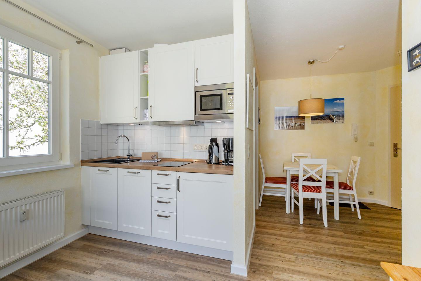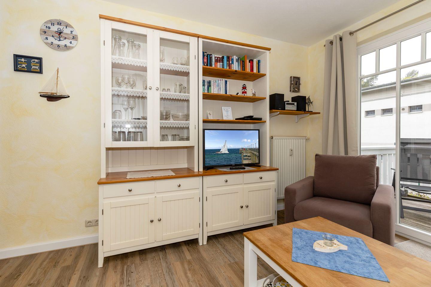 Auf der 1. Etage befindet sich die Ferienwohnung, auf der Westseite der Anlage „Strandstraße 32“, die nahe des Zentrums mit zahlreichen Einkaufsmöglichkeiten und Restaurants liegt – Strand und Seebrücke sind nur 400 Meter entfernt.
