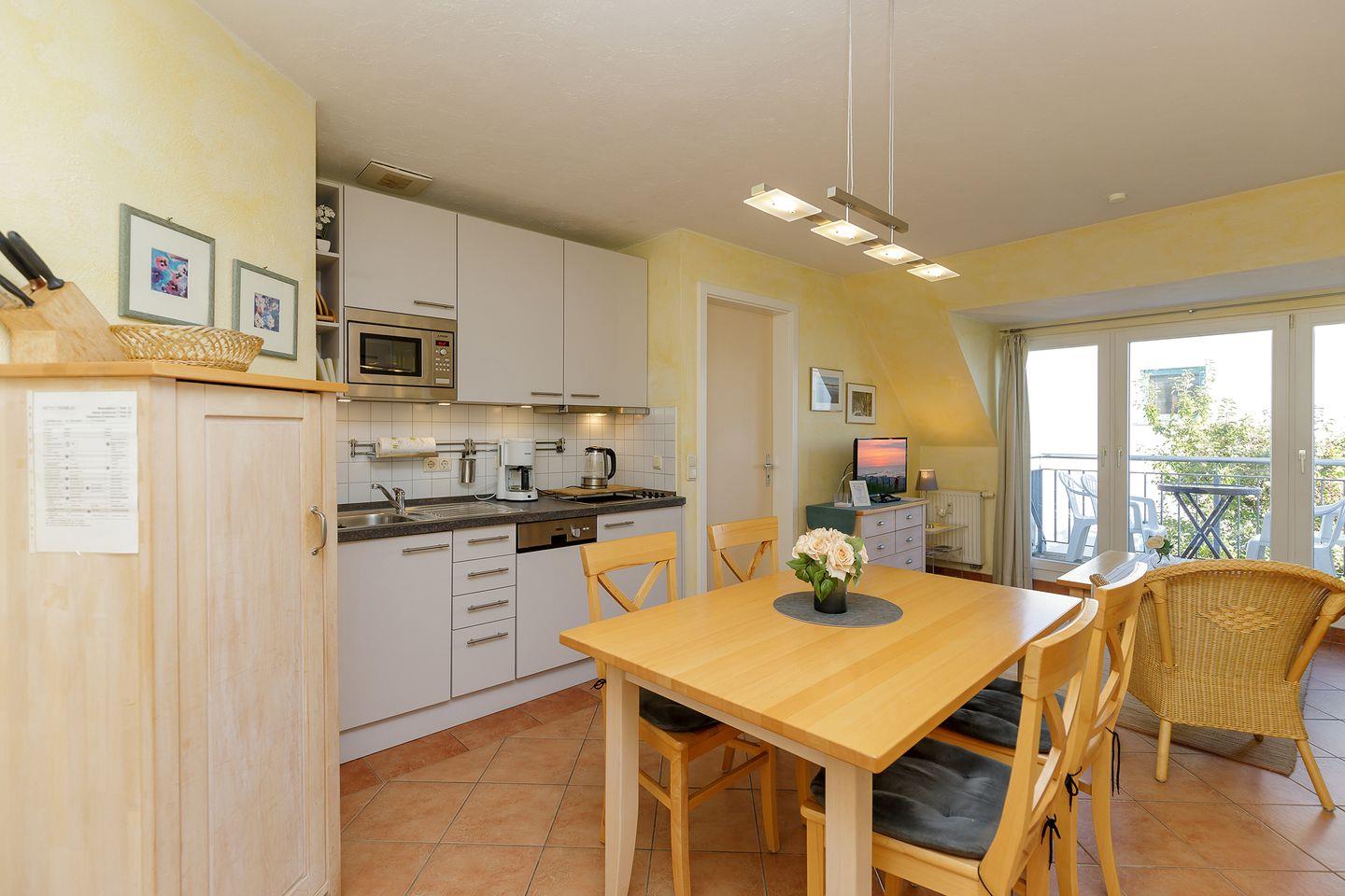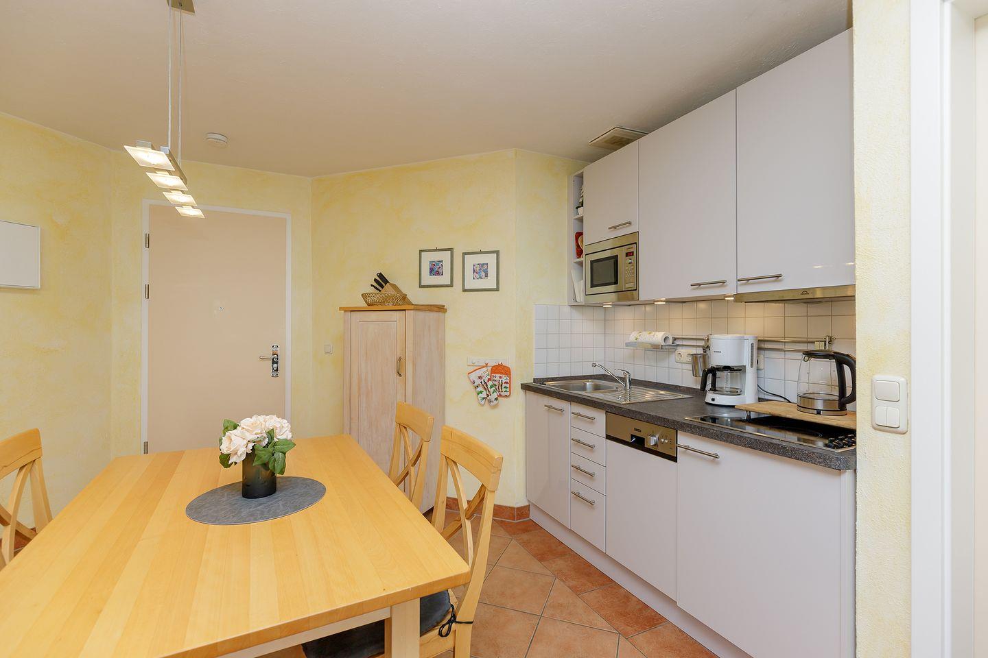 Eine voll ausgestattete offene Küche mit Mikrowelle und 4-Platten-Herd ist ebenso im Apartment vorhanden wie ein Föhn, Bücher, Gesellschaftsspiele, zwei TV Geräte und eine HiFi-Anlage.