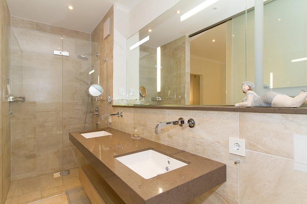 Das hochwertig ausgestattete Apartment mit kostenfreiem WLAN beinhaltet einen Wohnbereich mit Flatscreen-TV, DAB-Plus-Radio, Blu-ray/DVD-Player und Doppelschlafcouch sowie ein Schlafzimmer mit Doppelbett und Flatscreen-TV. Die voll ausgestattete offenen Küche verfügt über Ceranherd mit Backofen und Mikrowellen-Kombination, Kühlschrank mit Gefrierfach, Geschirrspüler, Toaster, Wasserkocher und Kaffeemaschine. Im geschmackvollen Badezimmer befinden sich eine ebenerdige Regendusche, ein Handtuchheizkörper, ein Doppelwaschbecken, WC, Kosmetikspiegel und Föhn.