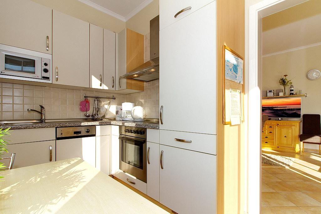 Zudem gehören zur Ferienwohnung eine kleine, voll ausgestattete separate Küche mit Ausblick zum Wald. Die Küchenausstattung beinhaltet Wasserkocher, Kaffeemaschine, Toaster, Backofen, Geschirrspüler, Mikrowelle und Eierkocher. Des Weiteren verfügt das Apartment über Mini-Safe, Föhn, Bügeleisen, Bügelbrett, TV-HiFi-Anlage, drei Flachbild-TV-Geräte und einen DVD-Player. Der WLAN-Anschluss ist kostenfrei.