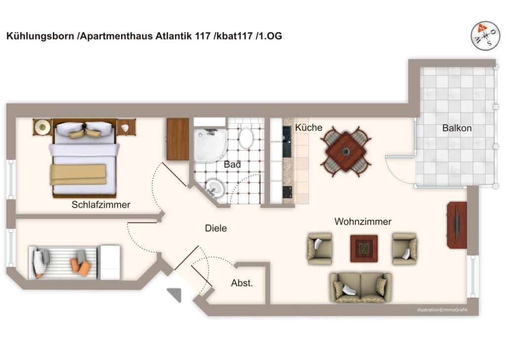 Das moderne 51 qm große 3-Zimmer Apartment ist für bis zu 3 Personen geeignet. Besonders hervorzuheben sind die überaus geschmackvolle Einrichtung und der überdachte, seitlich zur Ostsee gelegene Balkon.