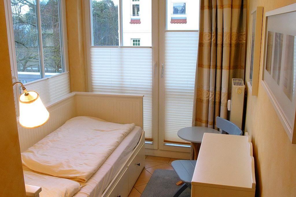 Das Nichtraucher-Apartment ist hochwertig und geschmackvoll eingerichtet und verfügt über zwei Schlafzimmer mit einem Doppelbett (2 x 80 m x 2,00 m ) bzw. einem Einzelbett (0,80 m x 2,00 m) sowie über eine Doppelschlafcouch im Wohnbereich, ein Bad mit großzügiger Dusche und eine kleine Abstellkammer. Die helle und offen konzipierte Wohnung bietet eine großflächige Fensterfront mit Blick bis zum Meer, wenn in den Wintermonaten die Bäume der Uferpromenade ihre Blätter verlieren. Die Wohnung verfügt über eine voll ausgestattete offene Küche mit Wasserkocher, Kaffeemaschine, Toaster, Geschirrspüler und Mikrowelle mit Heißluftgarfunktion sowie über zwei Flachbild-TVs, DVD- Player, HiFi-Anlage sowie eine Büchersammlung und einen Mini-Safe. Das WLAN könnt ihr kostenfrei nutzen.
