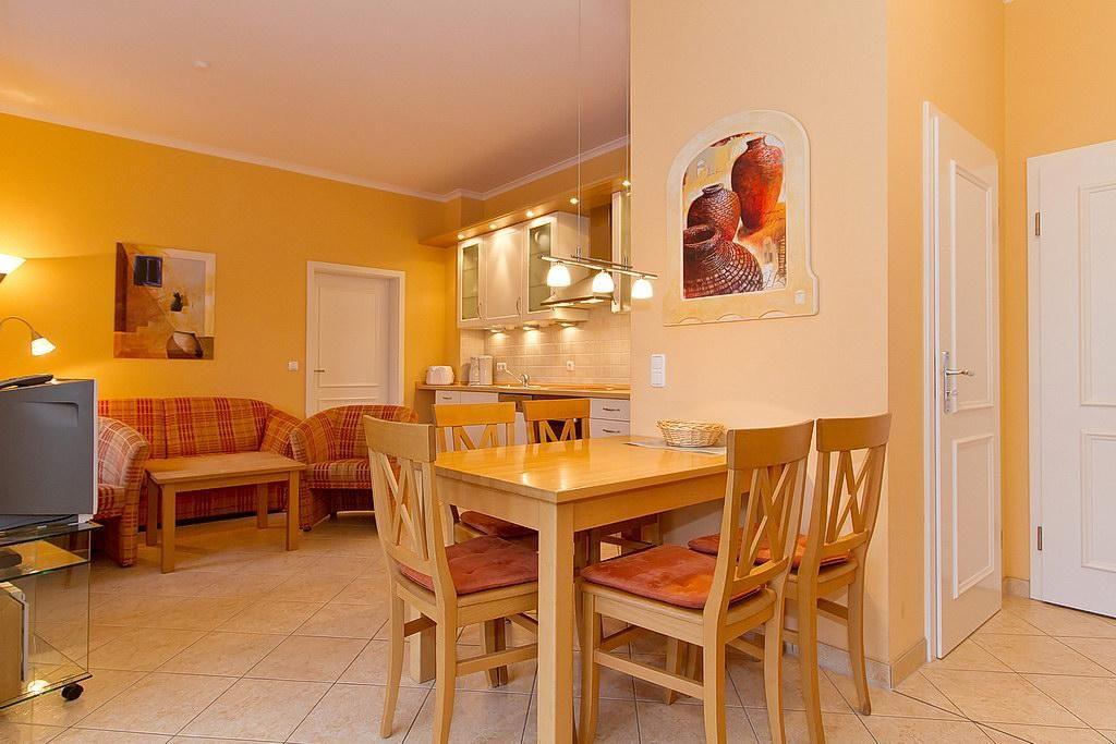 Zur Ferienanlage gehört ein eigener Wellnessbereich mit Pool, zwei Saunen, Fitness- und Ruheraum, der euch täglich zur Verfügung steht (lediglich in der 3. und 4. Kalenderwoche eines Jahres ist der Bereich auf Grund von Wartungsarbeiten geschlossen). Außerdem steht euch ein kostenfreier PKW-Stellplatz zur Verfügung. Nutzt gerne Münzwaschmaschine und -trockner in der Anlage ebenso wie den Bademantelverleih im Servicebüro. Euer Hund ist willkommen!