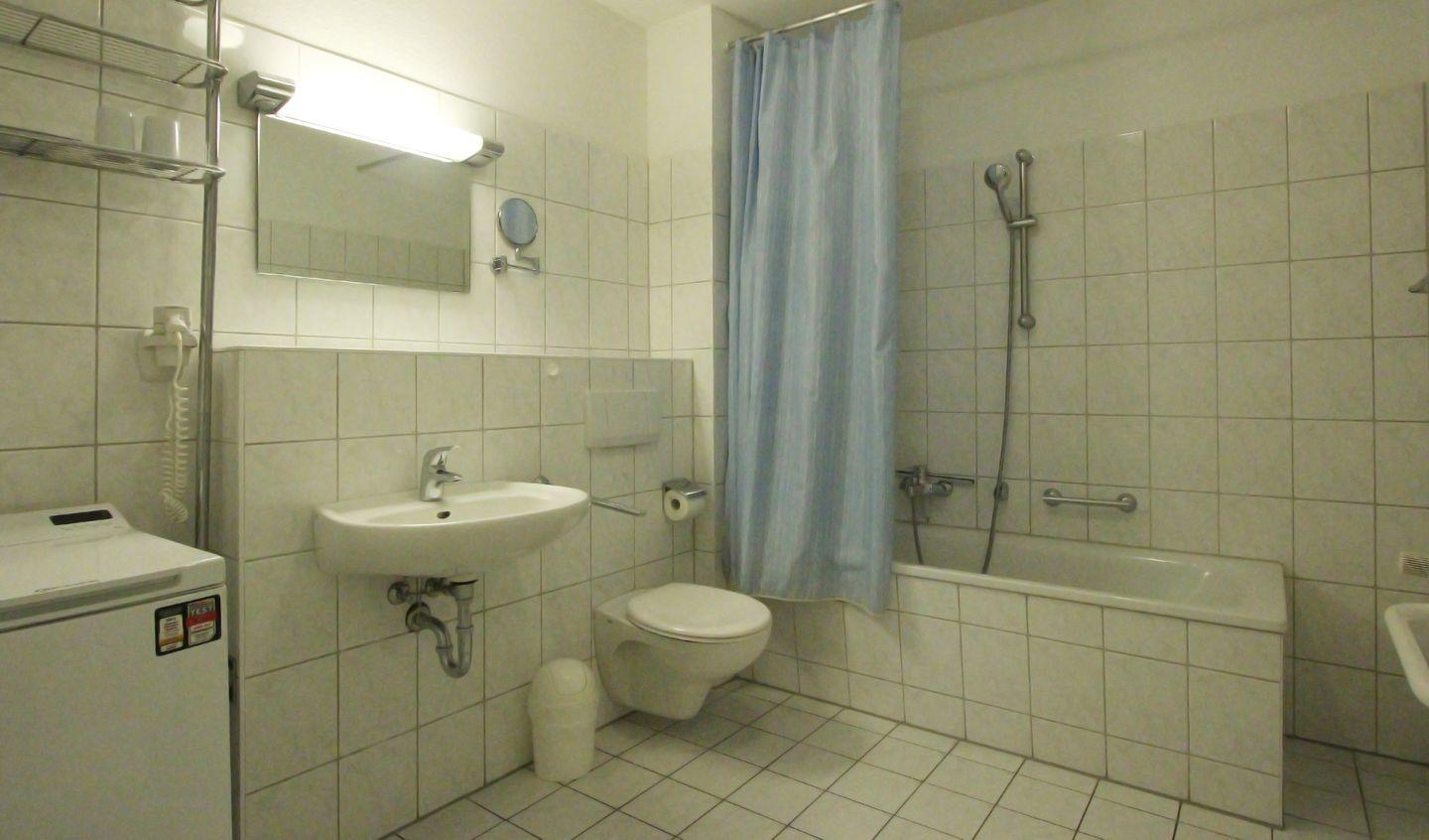 Das Badezimmer ist mit einer Badewanne, einer integrierten Dusche, Waschbecken, Spiegel und WC ausgestattet und verfügt selbstverständlich über warmes Wasser. Alle Fenster sind mit Sichtschutz versehen. Die Zentralheizung sorgt ganzjährig für ein angenehmes Raumklima.