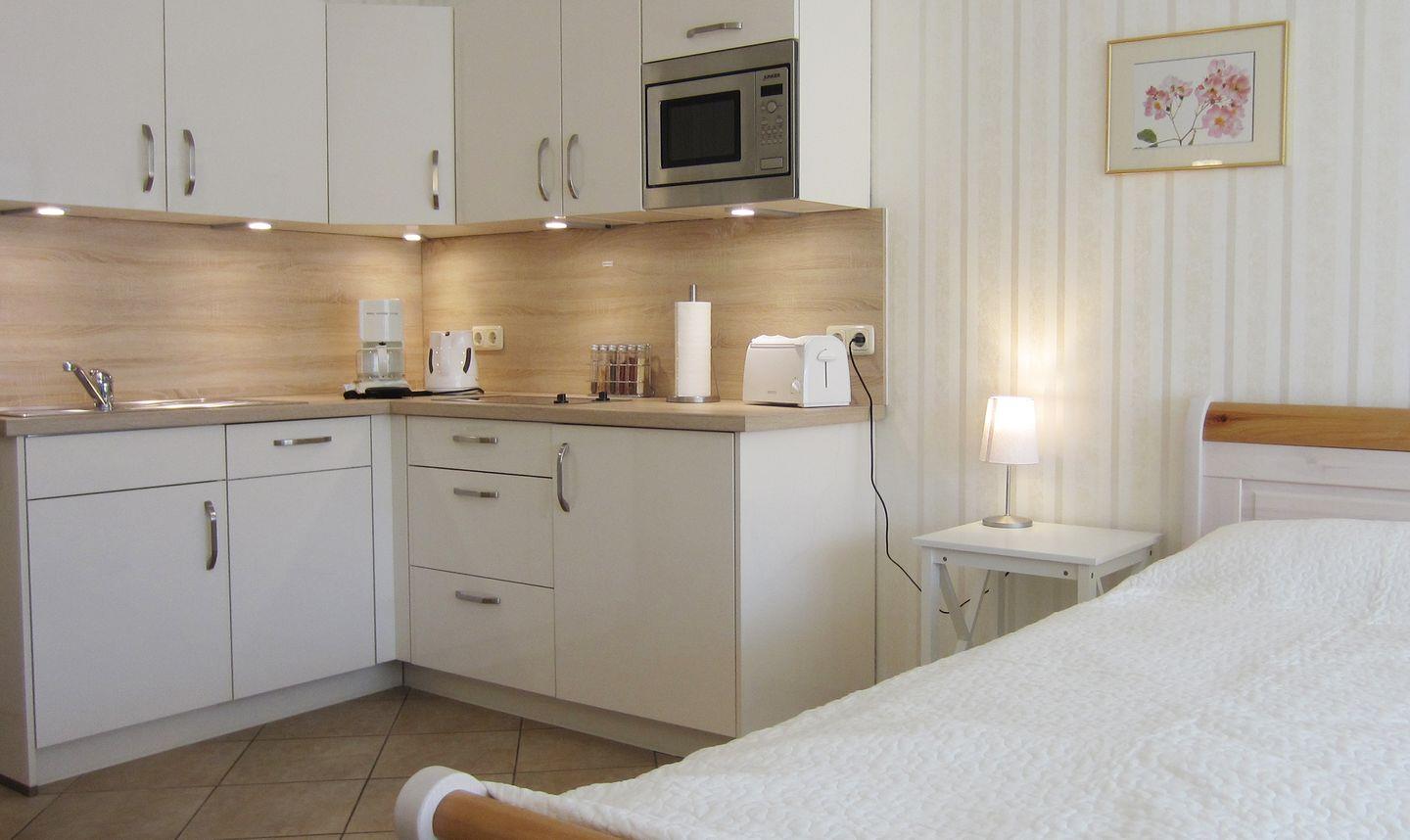 Eine gemütliche Küchenzeile enthält alles, was Sie zum Menü kreieren benötigen.