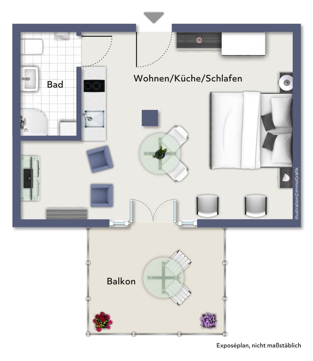 Die Ferienwohnung 18 im Haus Sonnenburg ist eine 1-Zimmer-Wohnung für bis zu 2 Personen. Die 31 m² große Wohnung liegt in der 3. Etage des Hauses und verfügt über einen Balkon zur Südseite.