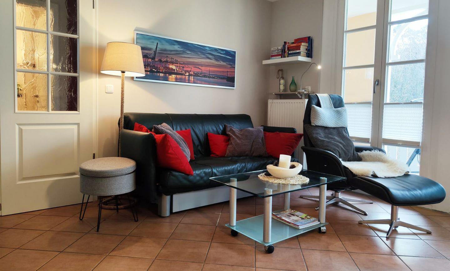 Der Wohnbereich ist mit Fliesen ausgestattet und angenehm praktisch eingerichtet: Sofaecke mit Sofa und Sessel, TV (insgesamt 2 Geräte, 25–34 Zoll, Satellitenanschluss) sowie eine HiFi-Anlage, CD- und DVD-Spieler und Radio sorgen für Unterhaltung. Internet und WLAN stehen Ihnen ebenfalls zur Verfügung. Für Ordnung und Komfort sind unter anderem Garderobe, Kommode, Ganzkörperspiegel, Staubsauger und Wäscheständer vorhanden; alle Fenster verfügen über Sichtschutz.