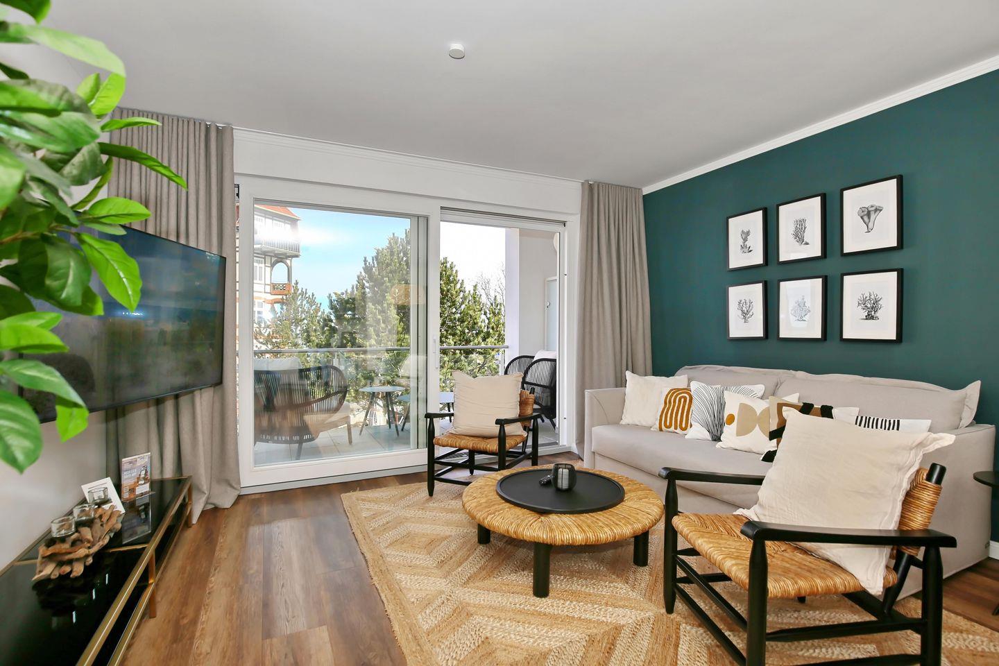 In dieser luxuriösen Ferienwohnung auf ca. 56m² wird eine hochwertige Ausstattung großgeschrieben. Die moderne 2-Zimmer-Wohnung mit Nord-Ost-Ausrichtung befindet sich in der 1.Etage der Villa Siegfried und bietet bis zu 4 Personen einen erholsamen Urlaub an der Ostsee – nach nur ca. 50 Metern bist du direkt am Strand. Die Wohnung ist in einen Wohnbereich, einen kombinierten Ess- und Küchenbereich sowie einem Schlafzimmer und einem Tageslichtbad mit Dusche aufgeteilt. Auf dem Balkon kannst du entspannte Stunden mit einem wunderschönen Blick auf die Ostsee genießen.