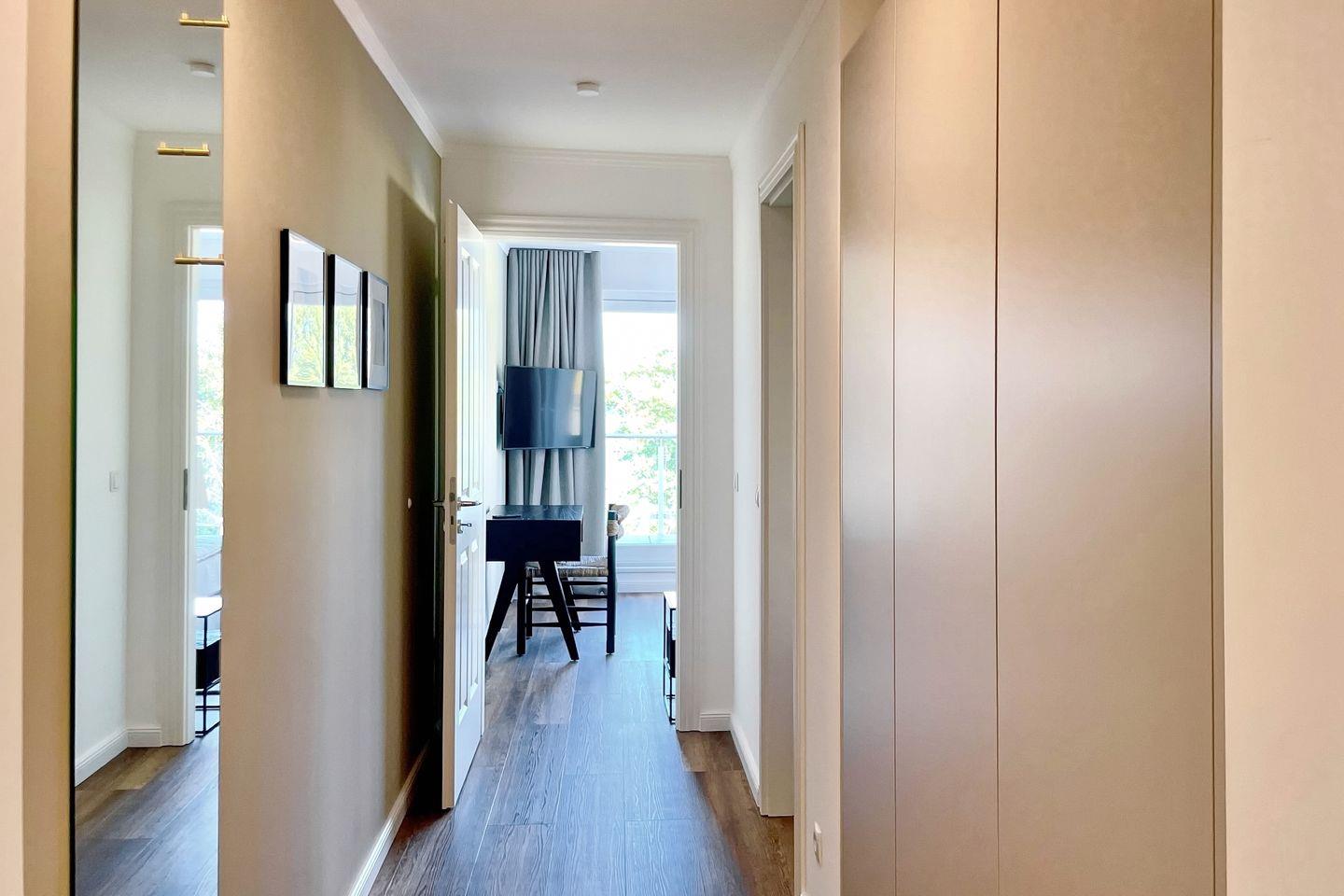 In diesem luxuriösen Penthouse mit einer Größe von ca. 76m² wird eine hochwertige und exklusive Ausstattung großgeschrieben. Das moderne 2-Zimmer-Penthouse mit Süd-Ost-Ausrichtung befindet sich in der 2.Etage der Villa Siegfried und bietet bis zu 4 Personen einen fantastischen Urlaub an der Ostsee – nach nur ca. 50 Metern bist du direkt am Strand. Die Wohnung ist in einen exklusiven Wohnbereich, einen kombinierten Ess- und Küchenbereich sowie einem gemütlichen und geschmackvollen Schlafzimmer und einem Tageslichtbad mit Dusche aufgeteilt. Auf der Dachterrasse kannst du entspannte Stunden mit einem wunderschönen Blick auf die Ostsee genießen.