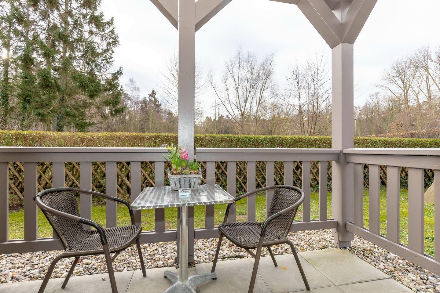 Die Wohnung Nr. 03 von ca. 39 m² befindet sich im Erdgeschoss auf der Südseite des Hauses und verfügt über eine überdachte Terrasse. Münzwaschmaschinen und -Wäschetrockner stehen gegen Gebühr zur Verfügung.