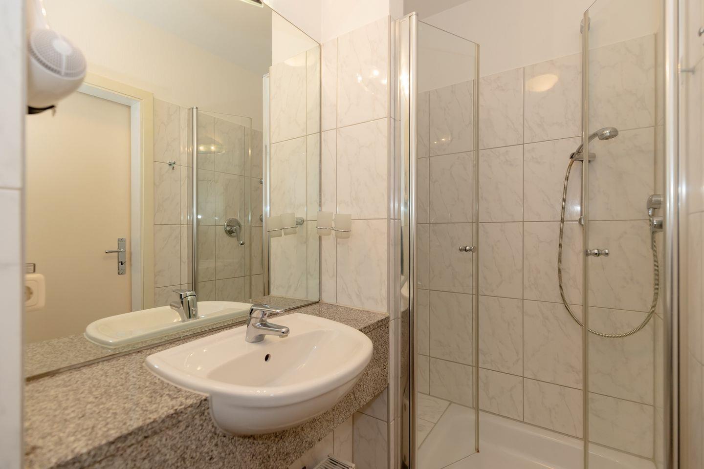 Die hübsche Wohnung verfügt über kostenfreies WLAN. Im kombinierten Wohn-Essbereich befinden sich die offene Küche mit Kühlschrank mit Tiefkühlfach, 4-Felder Ceranherd, Mikrowelle, Kaffeemaschine, Toaster, Mixer, Eier- und Wasserkocher sowie der angeschlossene Wohnbereich mit Doppelschlafcouch (1,60 x 2,10 m), SMART-TV (32 Zoll), CD-Player, Radio, Büchern und Gesellschaftsspielen. Das Badezimmer beinhaltet Dusche, Waschbecken, WC und Föhn. Das separate Schlafzimmer bietet euch ein komfortables Boxspring-Doppelbett in Überlänge (1,80 x 2,10 m), Kleiderschrank und einen SMART-TV (32 Zoll). Der Balkon zur Meerseite ist überdacht und mit Gartenmöbeln für 3 Personen ausgestattet - hier genießt ihr das wohltuende Klima der Ostsee. Der Balkon ist vom Wohnzimmer aus begehbar.