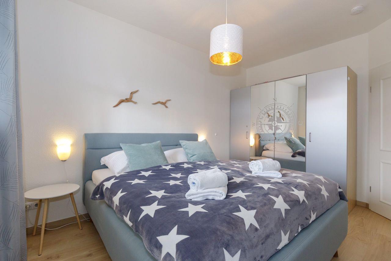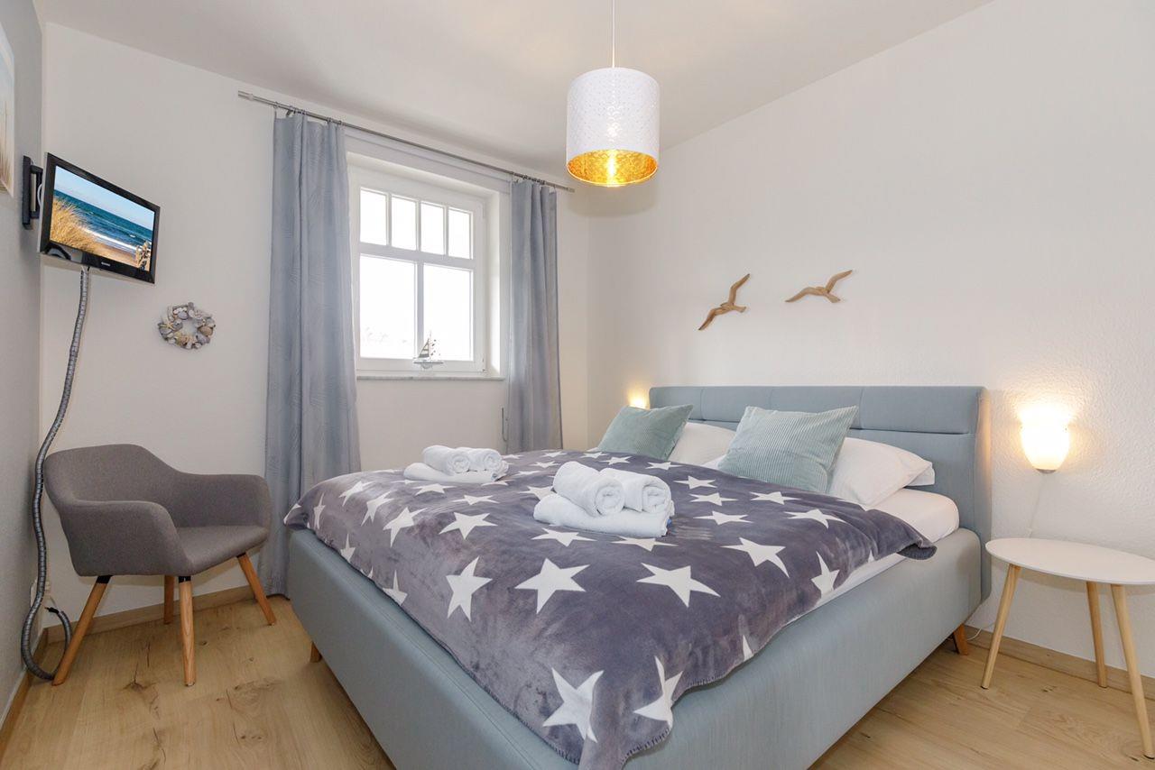 Das Schlafzimmer verfügt über ein bequemes Doppelbett (160 x 200 cm), einen großen Kleiderschrank sowie einen weiteren Fernseher.