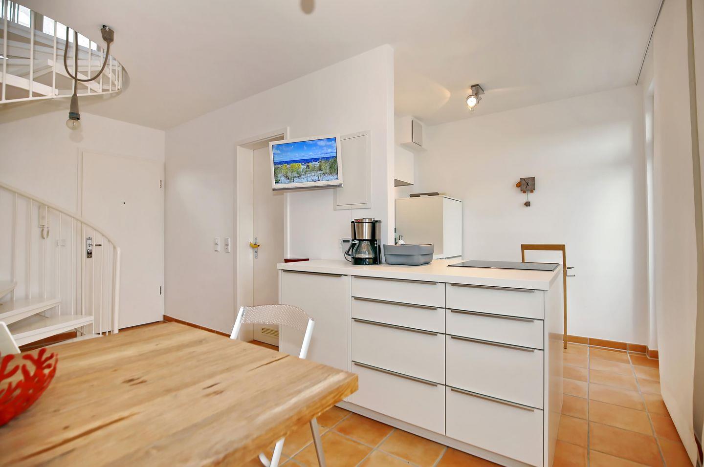 Die Ferienwohnung Nr. 15 in der Ferienanlage „Strandstraße 14“ ist eine 2-Zimmer-Maisonette-Wohnung für bis zu 2 Personen.