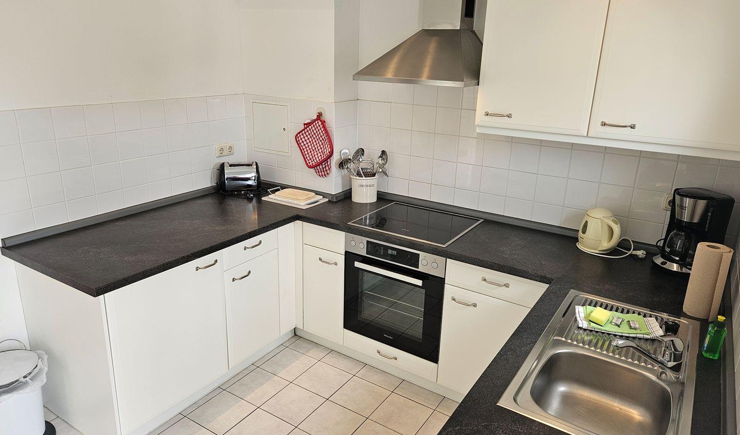Die geschlossene Küche ist umfassend ausgestattet und lässt keine Wünsche offen: Sie verfügt über einen 4-Platten-Elektroherd, Backofen, Spülmaschine, Kühlschrank mit Gefrierfach, Wasserkocher, Kaffeemaschine, Toaster sowie jegliches Geschirr und Besteck sowie Küchenutensilien des täglichen Bedarfs. Auch Geschirrhandtücher sind für Sie vorhanden, sodass Sie sich unabhängig und flexibel selbst versorgen können. Im direkt integrierten Essbereich mit Esstisch finden alle Gäste Platz für gemeinsame Mahlzeiten.