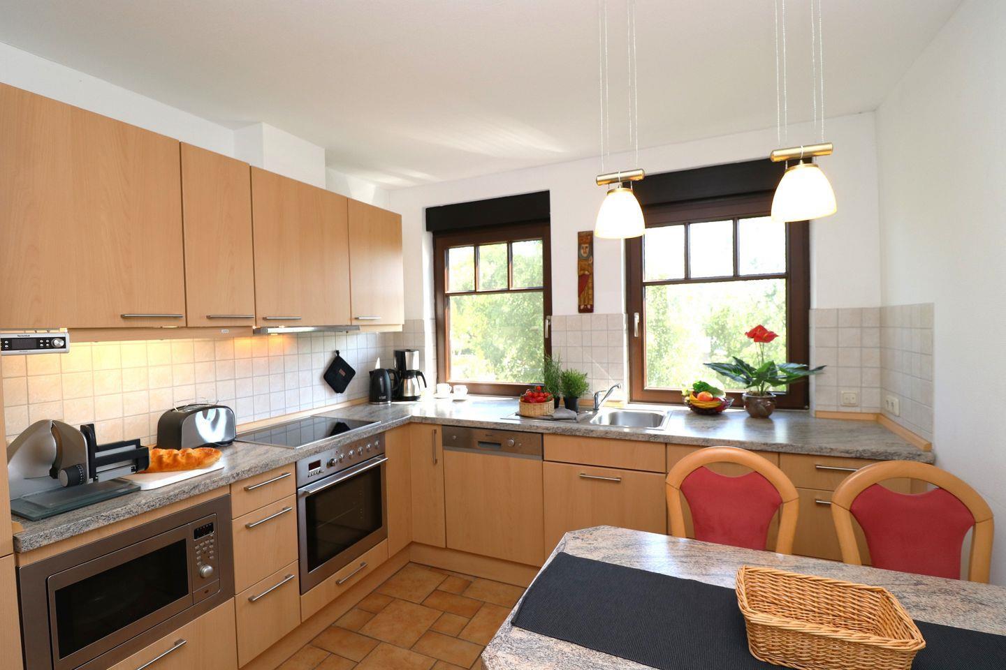 Dieses 55 m² große Maisonette-Appartement im Obergeschoss bietet Platz für bis zu 4 Personen und eignet sich hervorragend für einen entspannten Ostseeurlaub. Mit seiner gemütlichen und funktionalen Ausstattung ist es der ideale Rückzugsort für eine Auszeit. Das geräumige Wohnzimmer lädt zum Verweilen ein und bietet ausreichend Platz zum Entspannen. Die separat gelegene Küche bietet viel Raum, um leckere Mahlzeiten zuzubereiten, und ist komplett ausgestattet. Im Schlafzimmer sorgt ein gemütliches Doppelbett für erholsame Nächte. Das Badezimmer ist mit einer Dusche und einem WC ausgestattet. Eine Waschmaschine steht ebenfalls zur Verfügung, was besonders für längere Aufenthalte praktisch ist. Das zweite Schlafzimmer befindet sich im Dachgeschoss und ist mit zwei Einzelbetten ausgestattet – ideal für Kinder oder Freunde. Der nach Süden ausgerichtete Balkon eröffnet einen herrlichen Blick über die umliegende Landschaft und lädt zum Entspannen ein. Besonders in den lauen Sommerabenden ist er der perfekte Ort, um die frische Luft zu genießen und den Tag ausklingen zu lassen. Haustiere sind in diesem Appartement nicht gestattet, und das Rauchen ist ebenfalls nicht erlaubt. WLAN steht Ihnen zur Verfügung, damit Sie jederzeit mit Ihren Lieben in Kontakt bleiben können. Dieses Appartement bietet die perfekte Kombination aus Komfort, Ruhe und Natur – der ideale Ort für einen erholsamen Urlaub an der Ostsee.